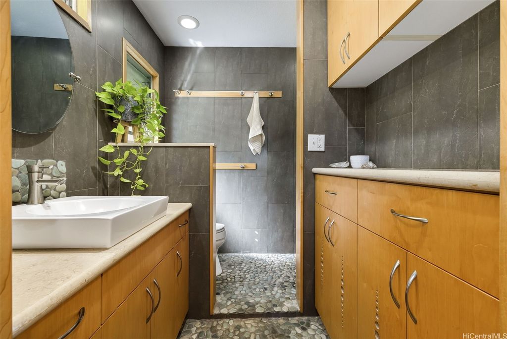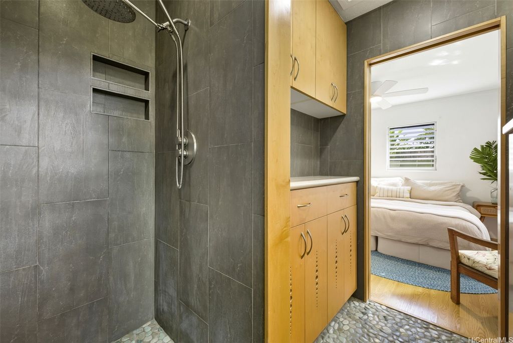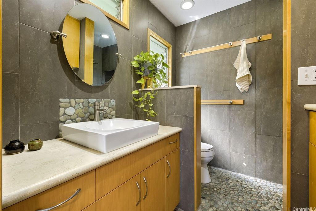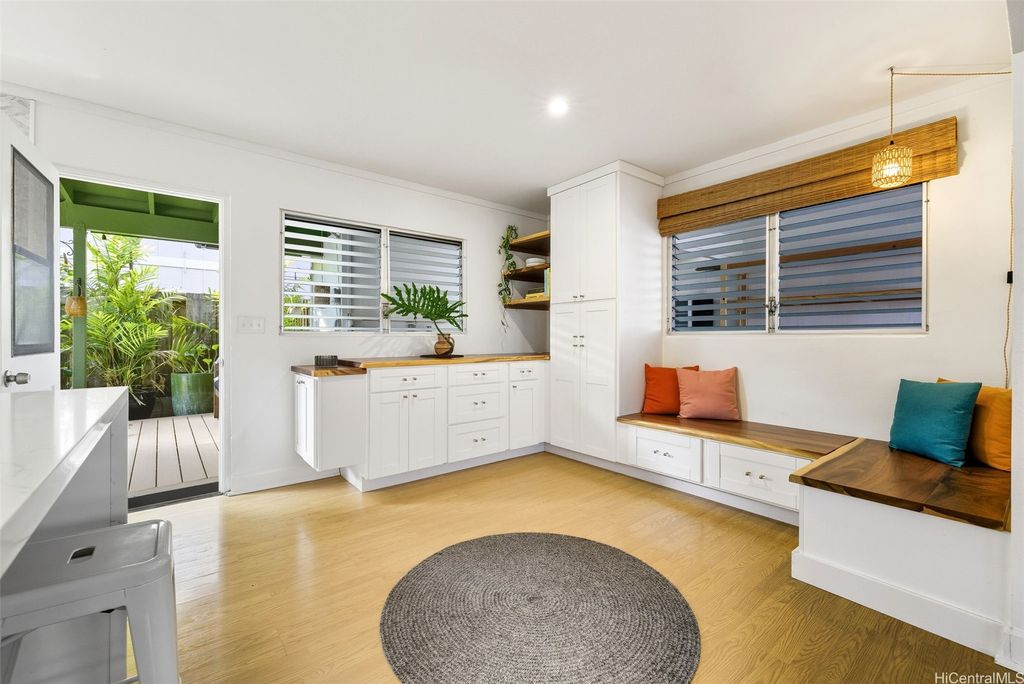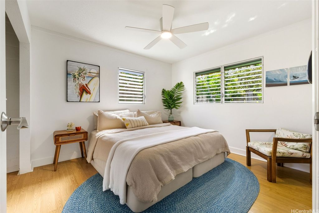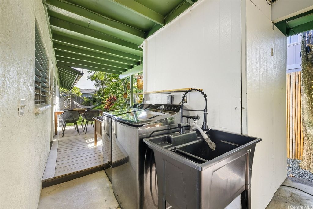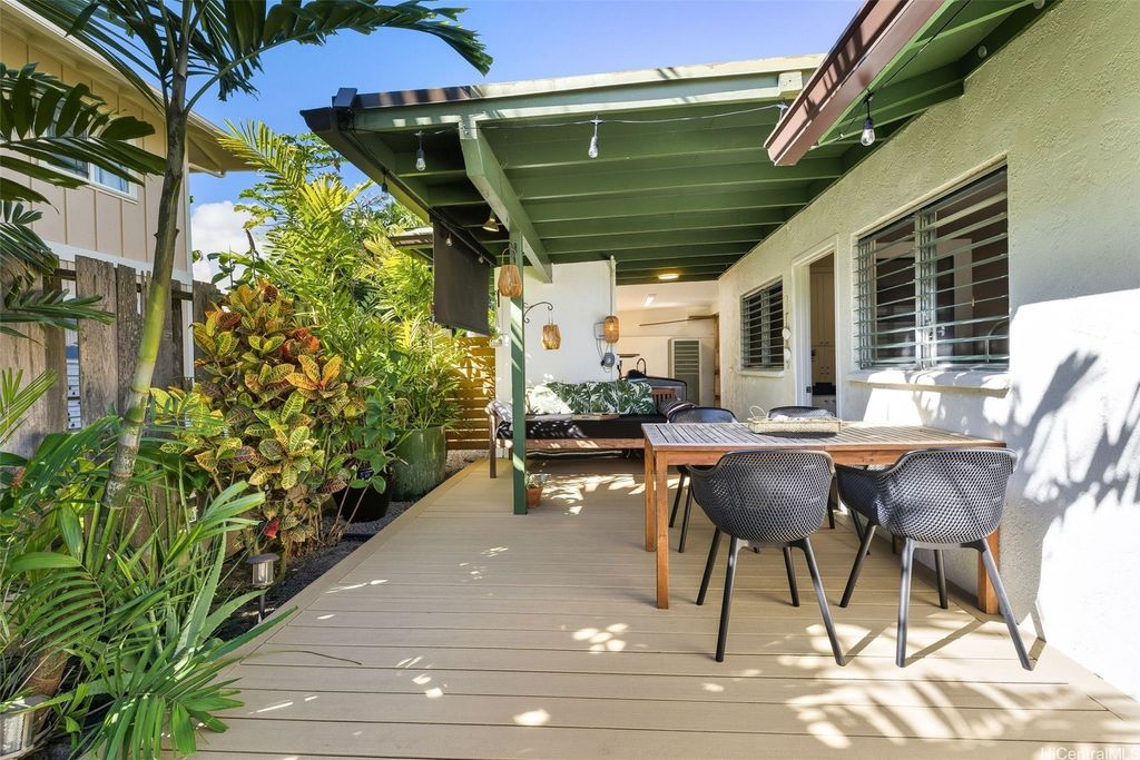 True turn key gem in the heart of Coconut Grove, Kailua. This 3 bedroom 2 full bath is perfectly situated to catch the trade winds, the concrete construction keeps it cool all year long with no termite worries. Kitchen recently remodled with stainless steel appliances, new Bosch fridge freezer and a dishwasher. Upgrades continue with custom cabinets and closets in all 3 bedrooms, new roof, outdoor shower and a brand new solar water heater. Outside is a beautiful landscaped yard, new timber tech deck and an automatic sprinkler system. Thoughtful storage throughout the house, an attic space with flooring and drywall and large tool/surfboard shed in the garage. The home is connected to the neighbor property via the carport wall and is located at the end of a private lane which adds safety and privacy, NO HOA. The neighborhood is quiet, peaceful and you can hear the waves crashing at night. Great relationship with neighbors including a care home with very nice tenants. 5min drive to Kailua town with shops, restaurant and supermarkets. 25min drive to the airport and 35min to Honolulu. Perfect low maintenance home with low insurance and low property tax. Come have a look for yourself!