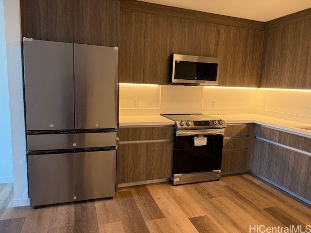 Lowest priced unit available with the perfect parking stall across from the bridge. Be the first to occupy this state of the art unit in the Park on Keeaumoku. Unit faces east so you get morning sun. Split A/Cs service the living and bedroom. Enjoy your usable lanai. Many luxurious amenities are available to you at the Park on Keeaumoku. Tenant pays for: Electricity Renters Insurance Credit report fee is $9 per adult. No smokers No pets Available now.