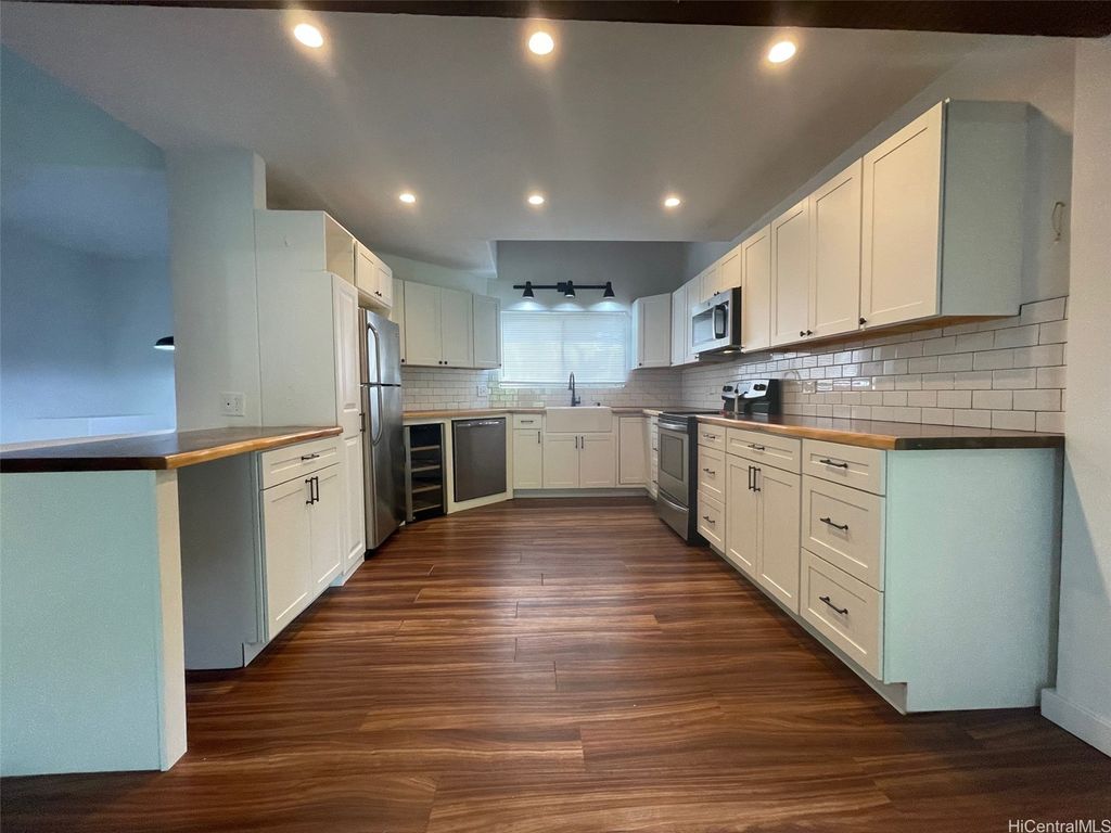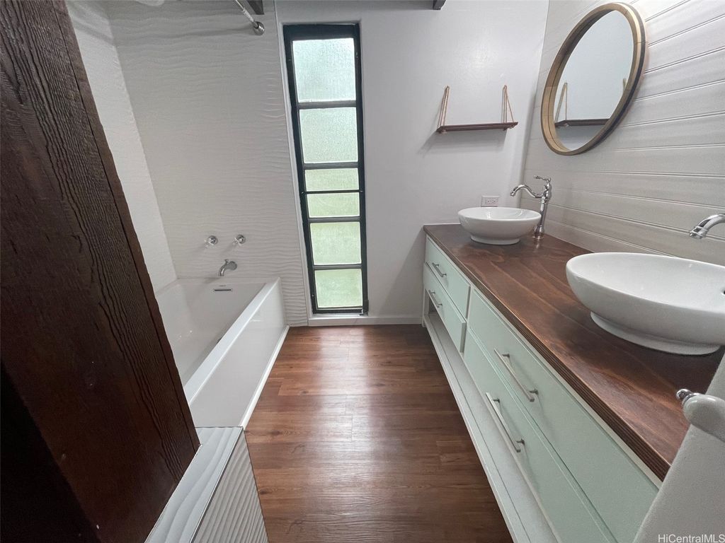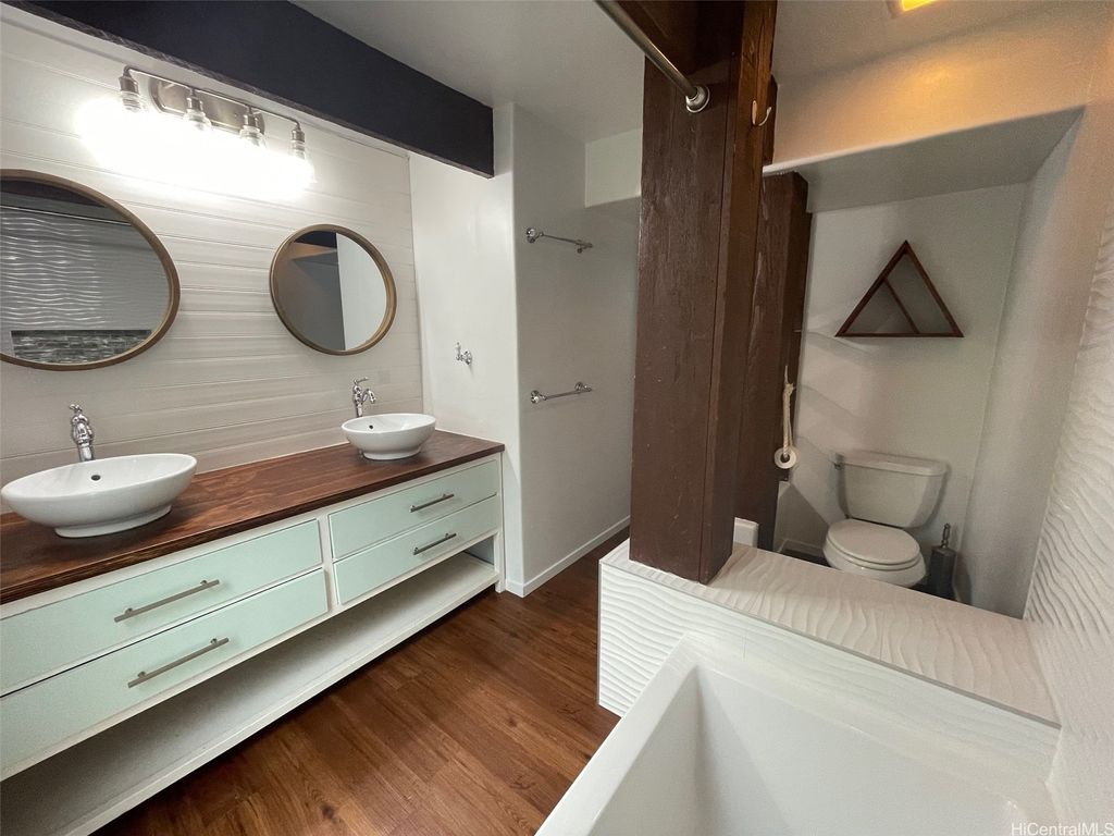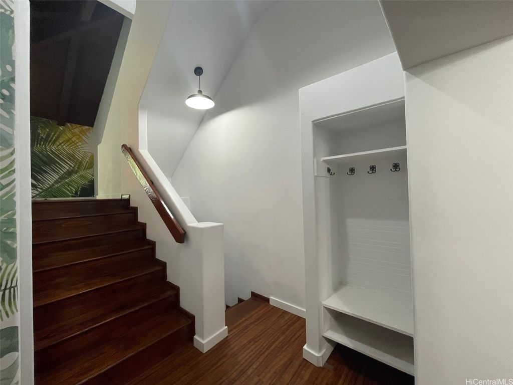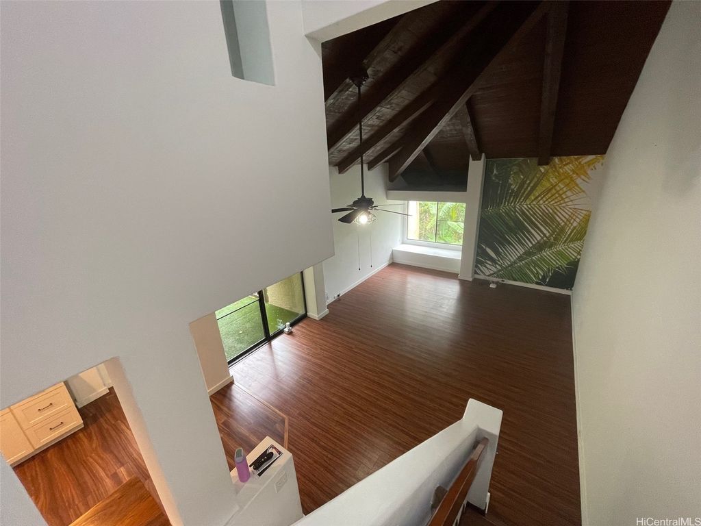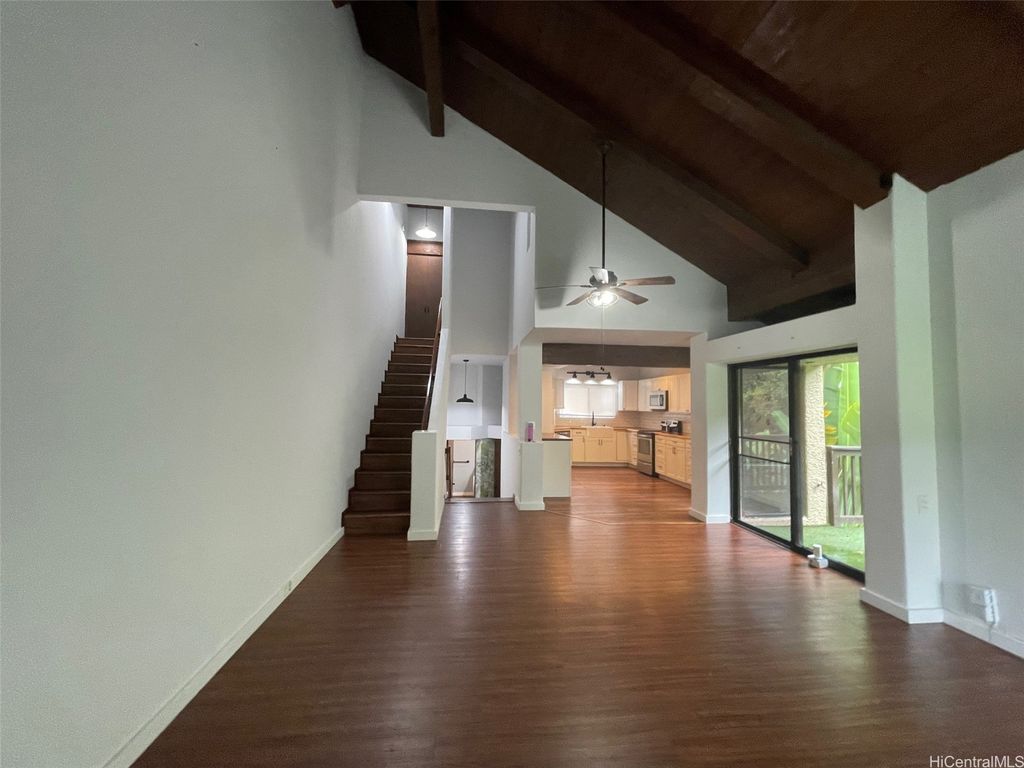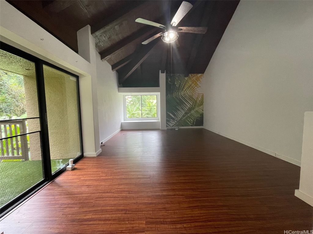 Spacious Steampunk-designed unit at Eden at Haiku Woods. This corner end, split-level unit has high vaulted ceilings and vinyl flooring throughout. The kitchen has a farmhouse sink, butcher block countertops, soft-close cabinets, stainless steel appliances, and a built-in desk. The living room has bay window seating to enjoy the view and access to your private lanai. Upstairs is your primary bedroom with 2 walk-in closets and an ensuite. Downstairs are 2 bedrooms, one with access to the outdoor space and additional storage space that was used as a gym. 2nd full bathroom is located at the entrance with a full-size washer and dryer. 1-year rental term to start. Available early to mid-November. Property rented unfurnished. No smoking. Pets are negotiable on a case-by-case basis. Rental includes cable, internet, water, sewer, and trash fees. 1 parking stall included #224. Offered for rent by Island Hale Property Management, LLC. License No. RB-22992