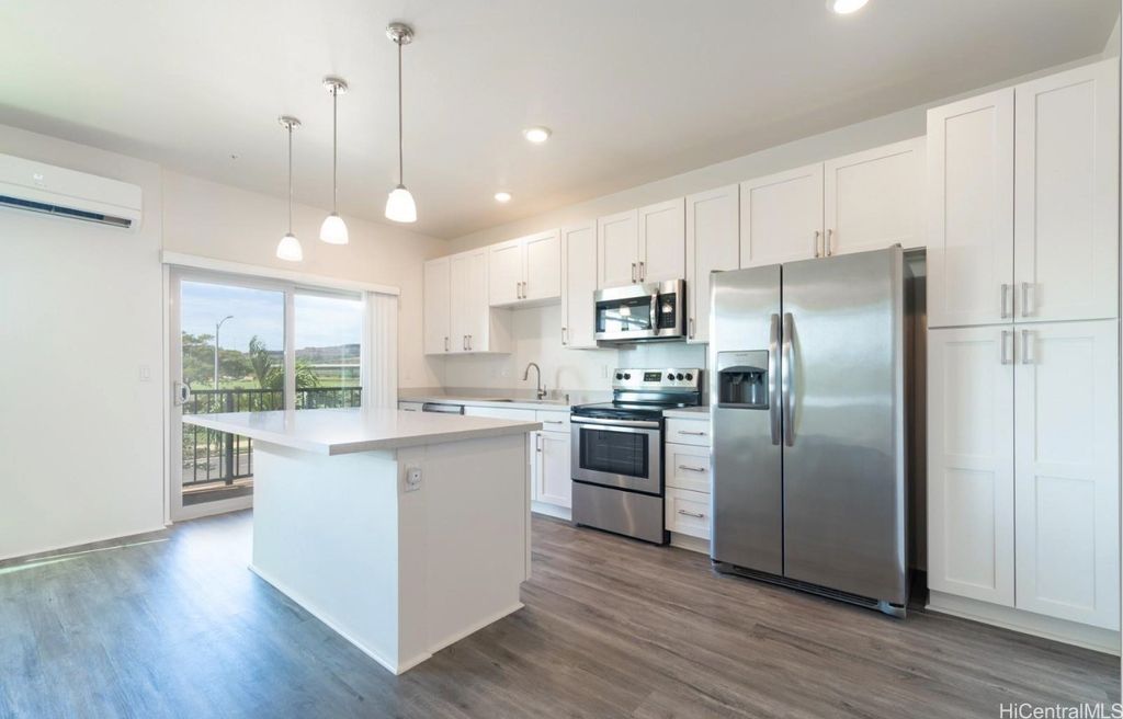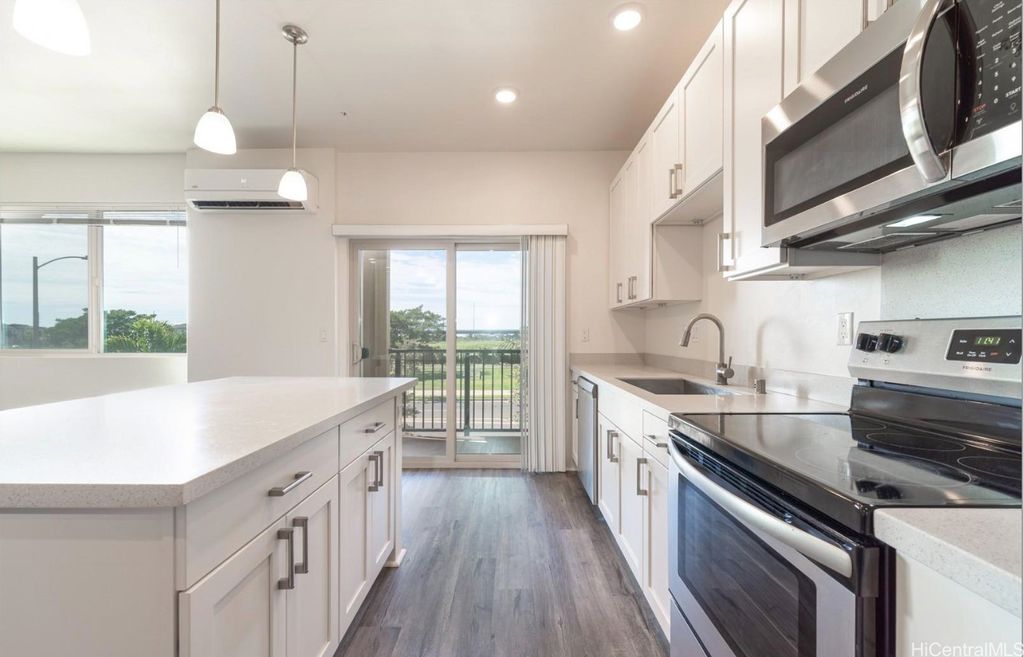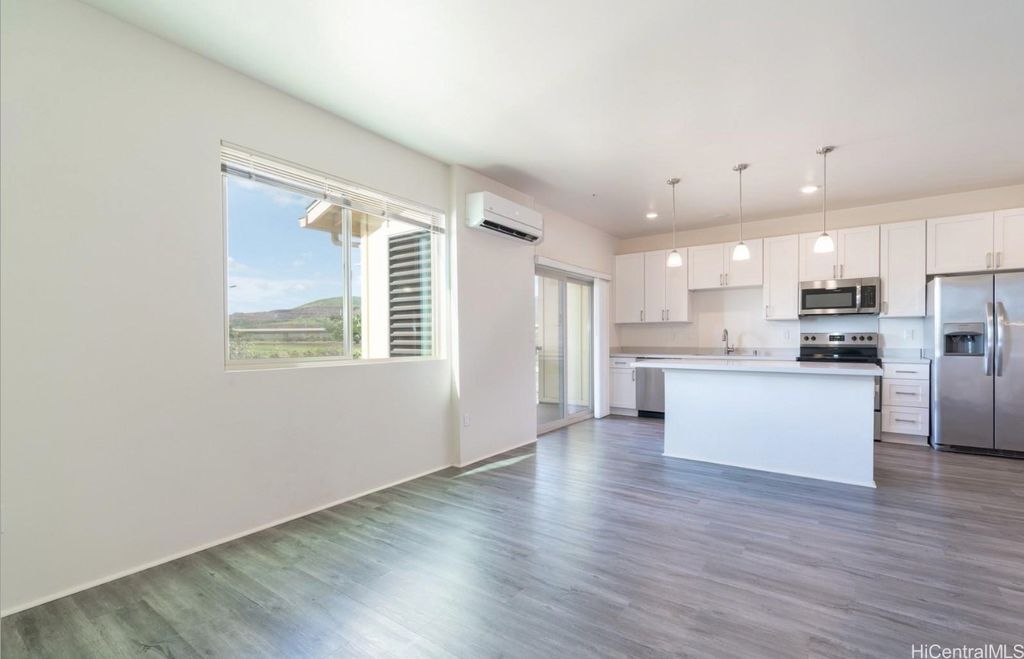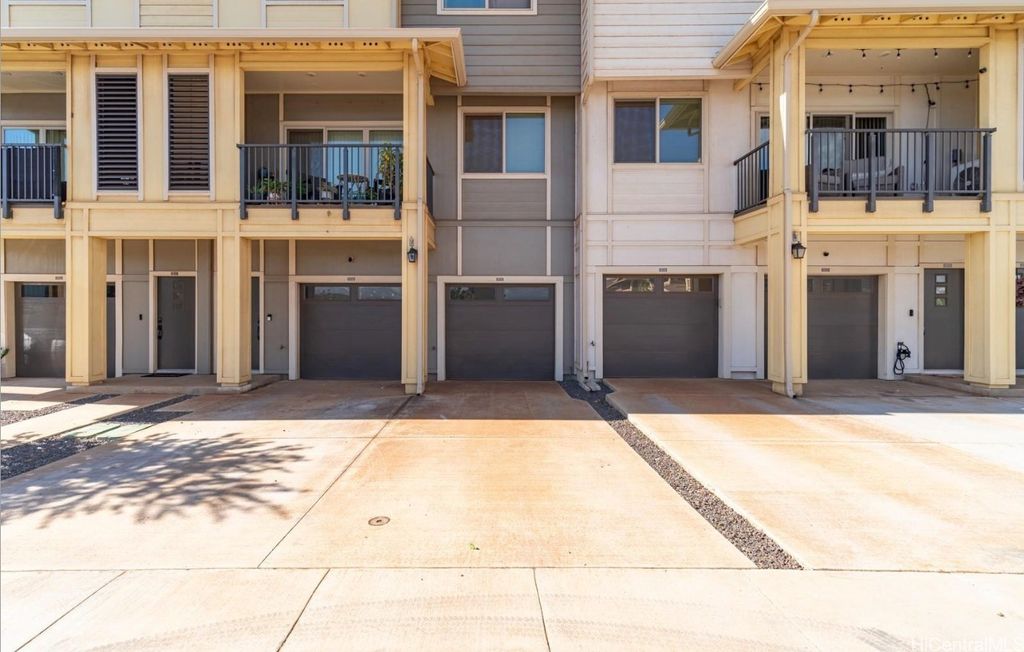 AVAILABLE ON NOV 1st ! This exceptional Hoopil'i FLEX unit, conveniently situated just 5 minutes away from Rail Transit and the H-1 Freeway access, offers an upgraded living experience. This 3-bedroom, 3.5-bathroom, and 4-parking space townhome presents a unique layout with a versatile 1st-floor "Flex Space" featuring a living area, one bedroom, one full bathroom, and a separate entrance. The first floor is ADA-compliant and can be used for certain businesses. The 2nd floor showcases an open-concept design with a spacious living area, a kitchen with an island, and a convenient half bath. On the 3rd floor, you'll find two bedrooms, two bathrooms, and a full-size Washer/Dryer. This townhome boasts Luxury Vinyl Plank flooring, plush carpeting, Stainless Steel Appliances, Quartz countertops, and Split AC in each room. Parking is ample with a garage for 1 car, a driveway for 1 car, and 2 assigned open parking spaces. Common amenities include a pool with BBQs, a dog park, playgrounds, SOHO community center, and recreation rooms for hosting events. Conveniently located near Kroc Center, Ka Makana Ali'i Mall, UH West Oahu, stores, beaches, and parks.