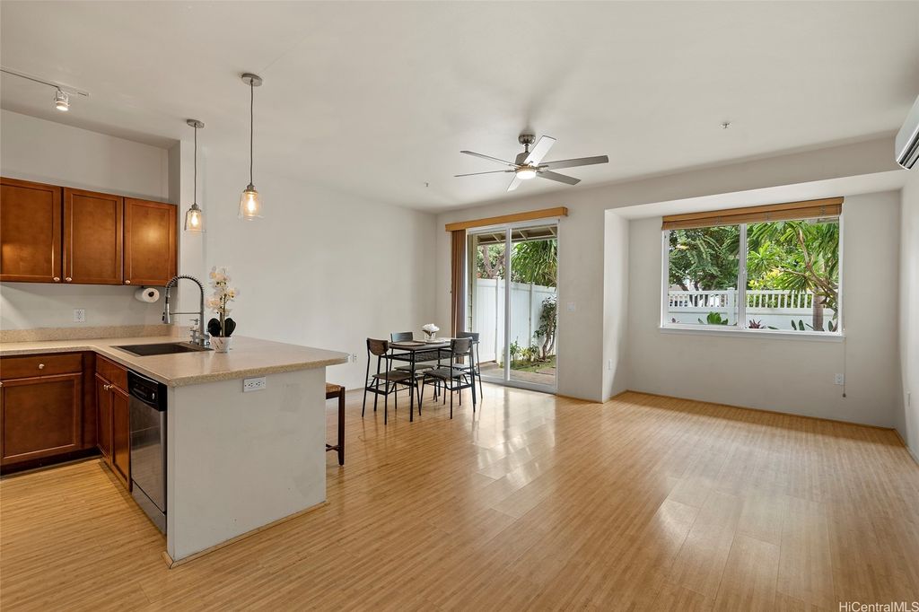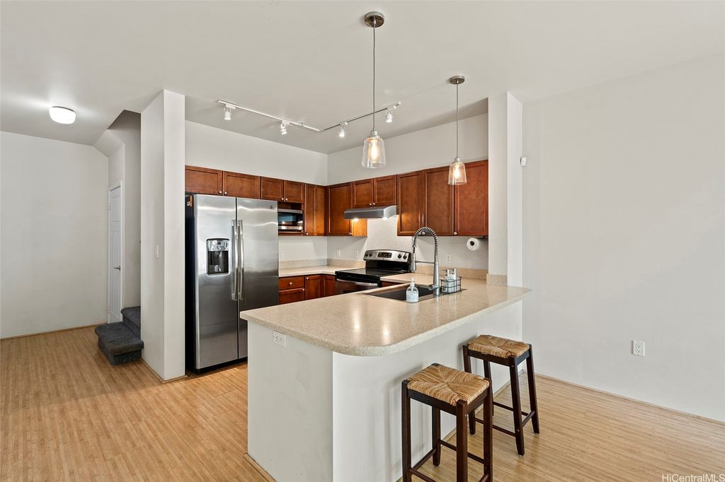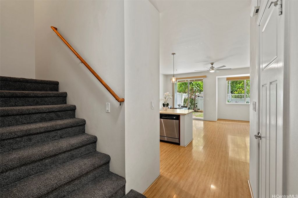 Welcome to your Maui dream home! Nestled at 31 E Kuu Aku Ln #206 in the heart of Lahaina's desirable West Maui community, this 3-bedroom, 2.5-bath townhome is a rare find with a one-car garage and a deeded parking space. Blending modern comfort with island charm, this home offers the perfect coastal lifestyle minutes away from the beach. Step inside to a bright, open-concept kitchen, dining, and living area filled with natural light, featuring bamboo flooring, stainless steel appliances, a split AC system, a wired alarm, and custom shades. A convenient half-bath on the main floor ensures guest privacy. Your private backyard lanai, surrounded by plumeria, palm trees, and tropical plants, is ideal for relaxing, hosting a barbecue, or enjoying time with your pet. Upstairs, new 2024 plush carpeting leads to two private bedrooms, a full bathroom, an in-unit washer/dryer, and ample storage for linens and essentials. The spacious primary suite occupies its own private floor, offering partial mountain views, vibrant sunsets, and beautifully landscaped surroundings.