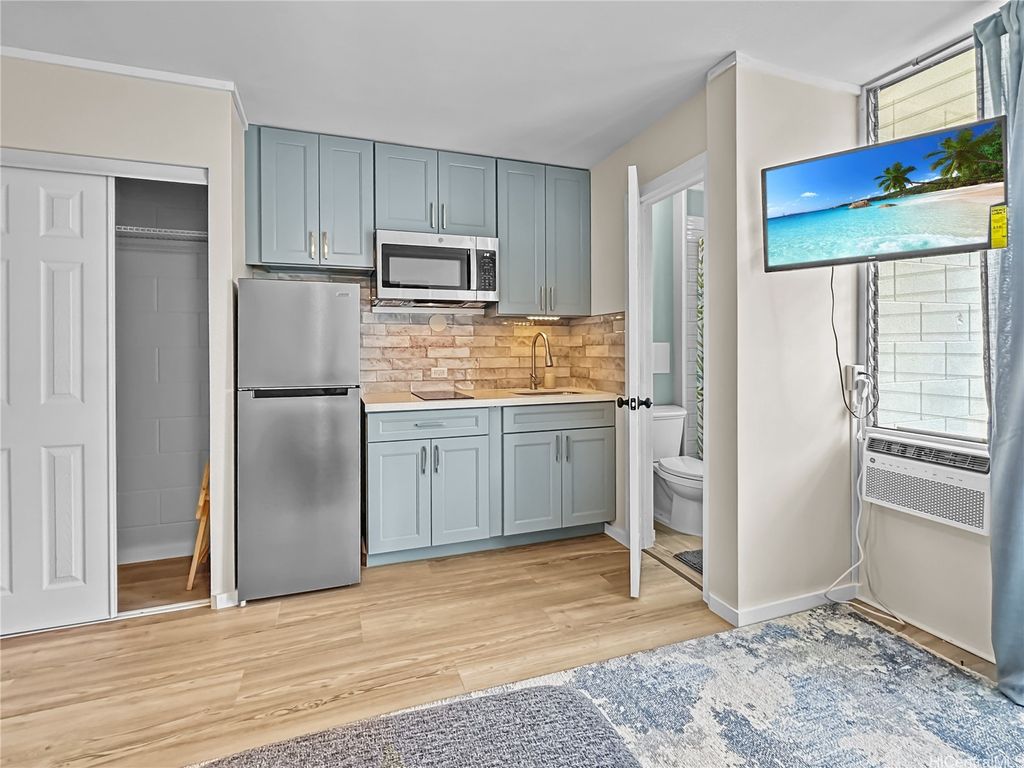 Fee Simple and Move-in ready! This fully furnished Waikiki studio, with Murphy bed and pullout couch, offers breathtaking mountain, sunrise, Ala Wai canal, and Ala Wai Golf Course views from the comfort of your 51 sq. ft. lanai. The 215 sq. ft. interior is efficiently designed, making it the perfect city retreat or investment opportunity. Located in the heart of Waikiki, you're just minutes from world-famous beaches, shopping, dining, and nightlife. The building features shared laundry facilities for added convenience. Parking is available in the building to rent (by waitlist). Whether you're looking for a turnkey rental, vacation escape, or a cozy city home, this is an opportunity you don't want to miss!