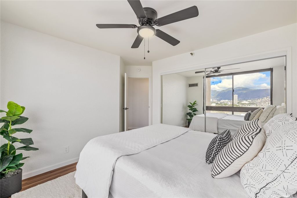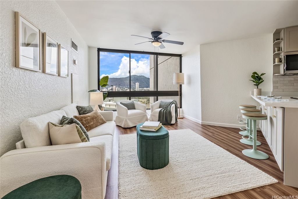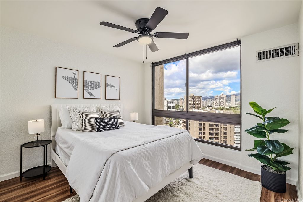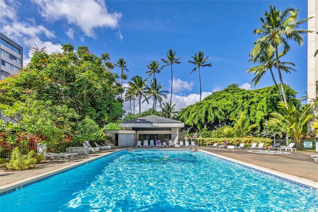 Welcome to you freshly renovated sanctuary at Liliuokalani Gardens, 2104 (Queen Tower)! 100% Hurricane coverage in place with no special assessment! Experience tranquil island living in this tastefully reimagines, never-lived-in oasis. Thoughtfully completed in October 2025, #2104 blends modern comfort with timeless serenity finished with all new appliances. This home welcomes the sunsets in soft pastels, majestic mountain views, & sparkling cit lights. This lush oasis once belonged to Queen Liliuokalani herself. Designed with privacy and safety in mind, this rare unit includes an in-home fire sprinkler system. Located just blocks from Waikiki Beach, The Zoo, Ala Wai Golf Course, Jefferson Elementary, Kapiolani Park, Kaimana Beach, and premier dining, this home is your serene retreat in a vibrant city setting. Resort style amenities include a koi pond, the largest residential pool in Waikiki, spa, BBQ pavilions, pickleball/tennis courts, EV charging stations, & 24/7 security-all surround by lush tropical gardens. HOA fee includes internet, cable, hot water, water and sewer. Assigned parking $300/year. 90-day minimum rental.