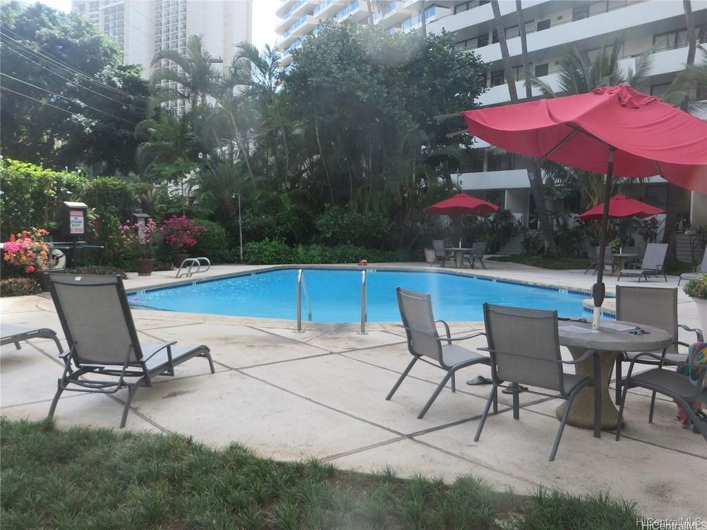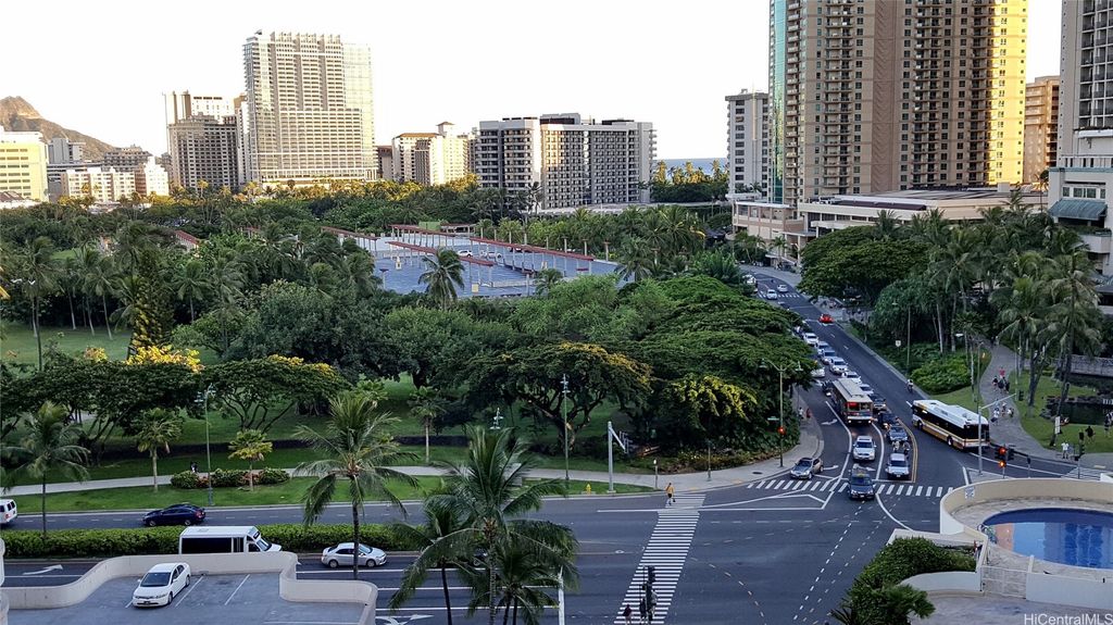 Enjoy urban convenience in this bright and breezy 1-bedroom, 1-bath unit at the Kalia "” ideally located at the entrance of Waikiki! This well-maintained leasehold unit features beautifully landscaped gardens, a heated pool, BBQ area, and secured entry with 24-hour security. Conveniently located near beaches, shopping, restaurants, and bus lines. Lease expires 2048. The maintenance fee includes property tax, electricity, water, sewer, and other common expenses. Tenant-occupied, please do not disturb. Showings by appointment only.