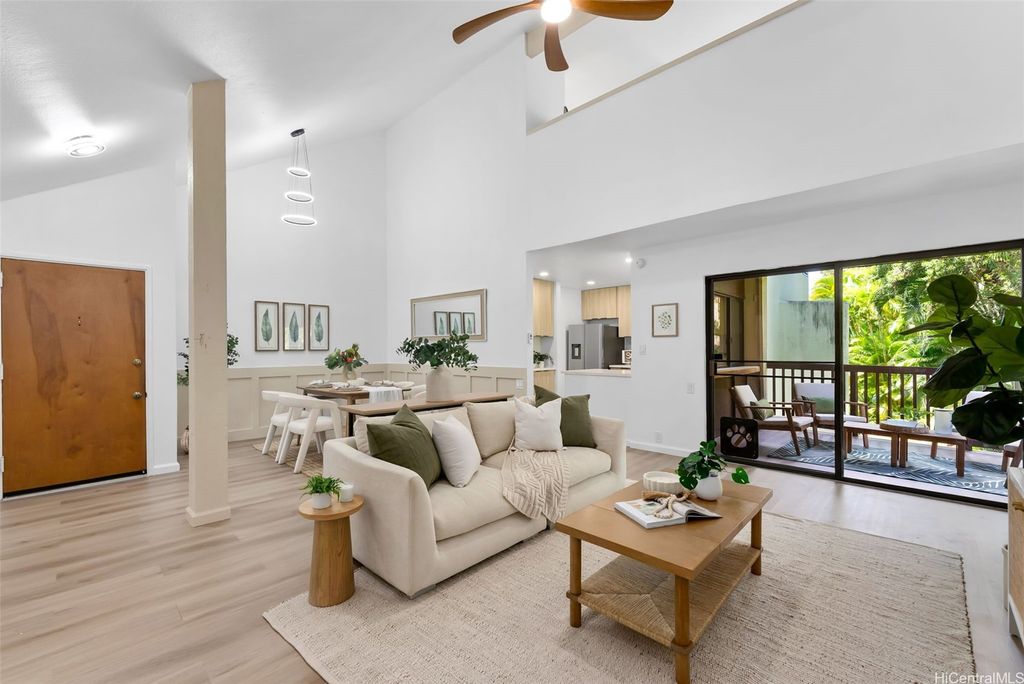 Spacious 2 bedroom 2 bath for under $700K! Experience serene Kaneohe living in this beautifully renovated townhome in Puu Alii. Soaring vaulted ceilings and an open layout create a bright, spacious feel, while the loft-style primary suite offers privacy, a walk-in closet, and peaceful vibes. Enjoy your morning coffee on the lanai overlooking a tranquil koi pond. Modern upgrades throughout make this home truly move-in ready. Take advantage of Puu Alii's resort-style amenities-pool, tennis courts, sauna, and more. Just minutes from Windward Mall, Kane'ohe Shopping Center, and H-3 access. Island living at its finest!