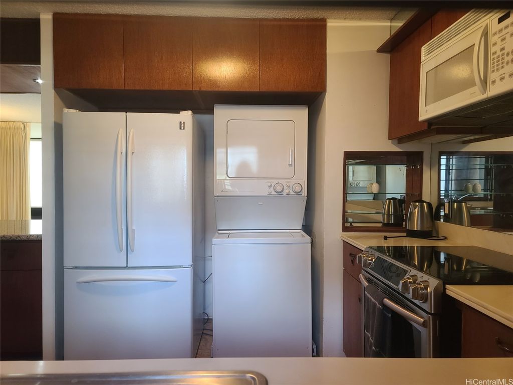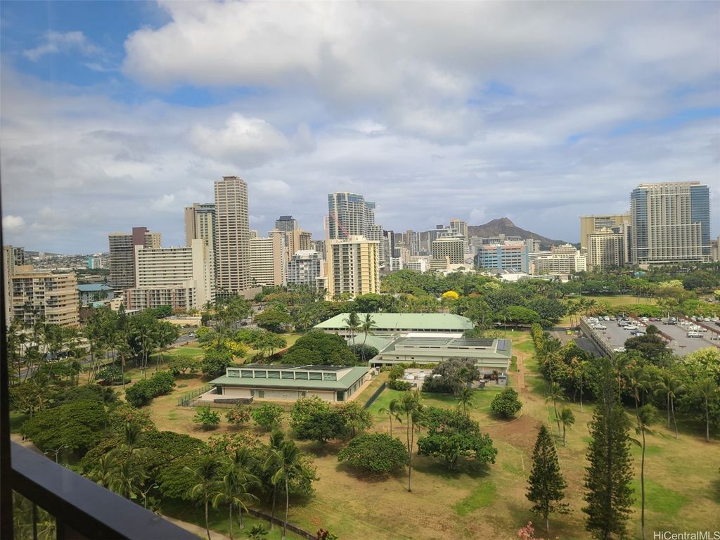 This unit boast phenomenal views of Diamond Head ocean and fireworks. These amazing views awaits you every day from this premier luxury residential building. Only 4 units per floor allows for your condo living a more quiet and private environment. This highly desired "C" stack unit with spacious 2 bedrooms and 2 private ensuite bathrooms welcomes your reality of living in paradise. The lanai has been enclosed for added living space. Beautiful custom built-in cabinets, bookshelves, and marble and wood parquet floors. Washer and dryer located in the unit. The building is pet friendly and has a pool, hot tub, BBQ, 24 hour security and a resident manager. Enjoy the convenience of living near boutiques, stores, renowned restaurants, and plenty of entertainment. The bus stop is located close by. The monthly maintenance fee covers ALL utilities including central AC, electricity, Cable TV, internet, hot/cold water.