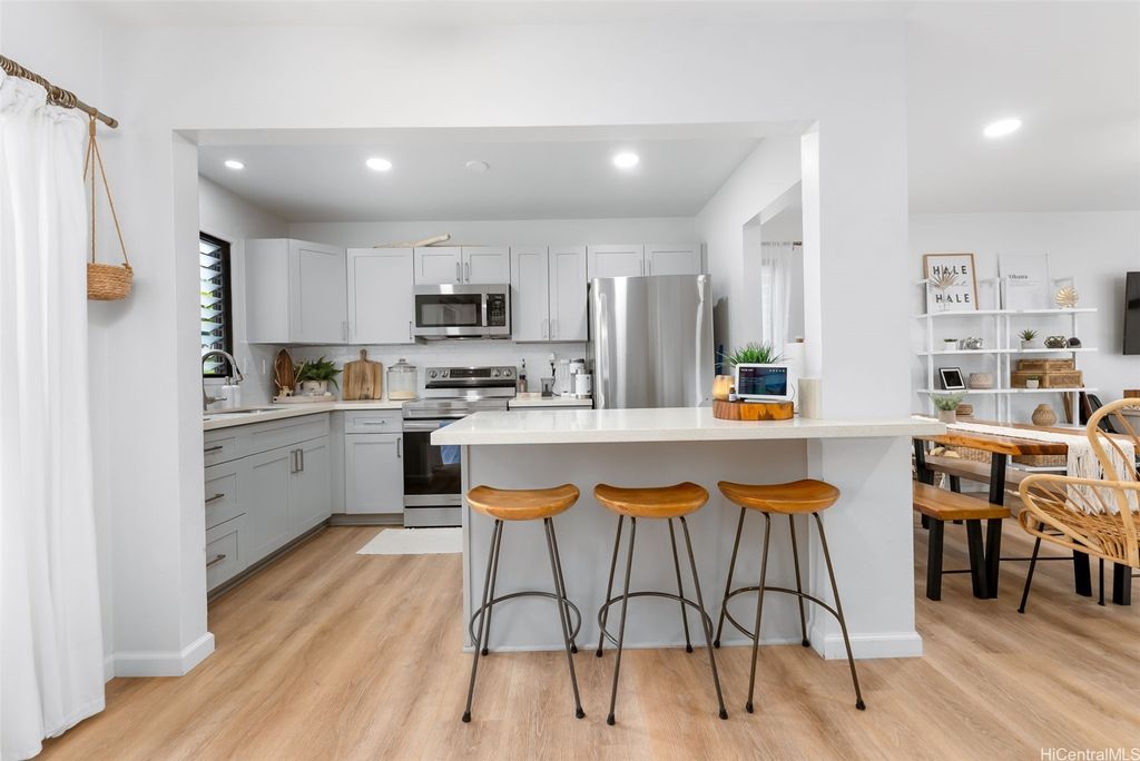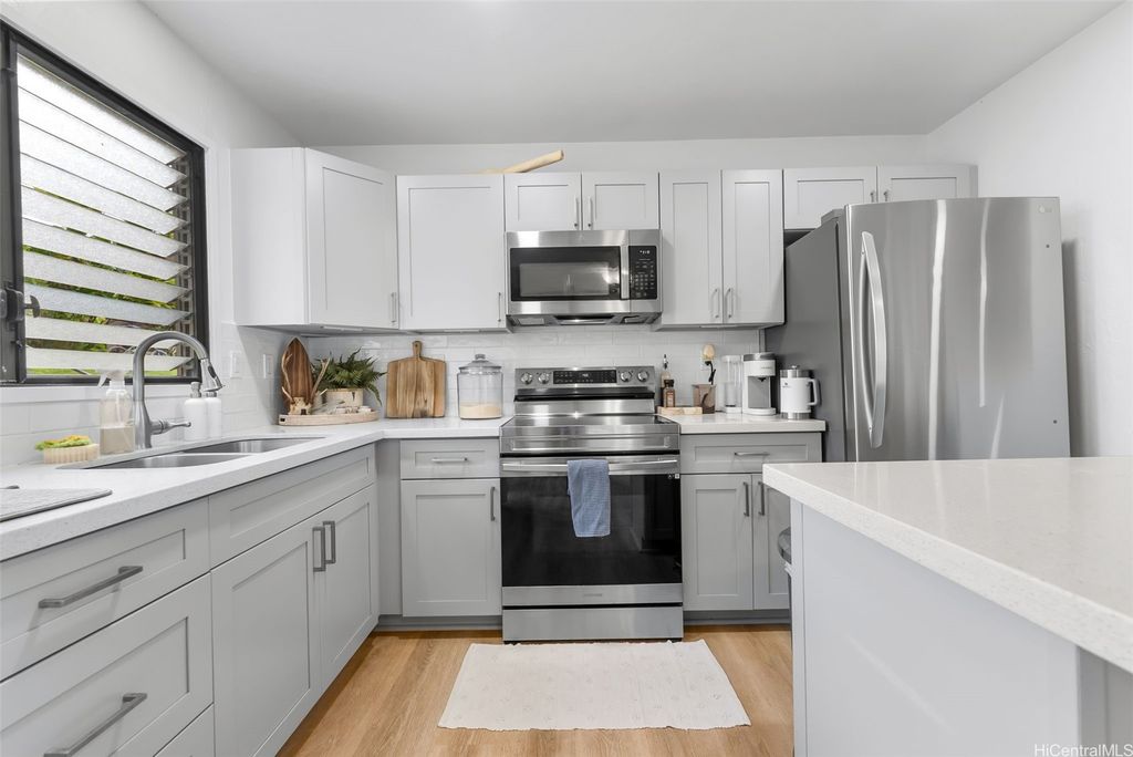 Nestled against the backdrop of the Ko'olau mountains, this two-story corner townhouse offers 3 bedrooms and 2.5 baths with a thoughtfully remodeled interior. The main level features an open living and dining area that flows to a private outdoor space, while the upstairs includes three comfortable bedrooms and two full baths. Recent renovations highlight updated finishes throughout, providing a modern and move-in ready feel. As a corner unit, it offers added privacy and natural light. Conveniently located near shopping, schools, and recreation areas, this home blends a tranquil setting with everyday convenience.