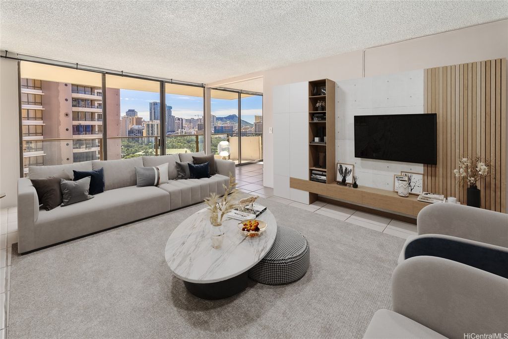 NEW PRICE! Enjoy breathtaking views of Diamond Head, the ocean, and the mountains from this spacious 17th-floor 2-bedroom, 2-bath condo with a private lanai. Located in the iconic Wailana at Waikiki, this well-appointed unit offers a prime location just minutes from world-renowned Waikiki Beach, the Ala Moana Shopping Center, the Hawaii Convention Center, and a variety of shops and restaurants. The Primary Bedroom features a unique Souji door that opens up to the main living space, creating an airy and open feel. With ceiling-to-floor windows and a glass door, you'll have panoramic views that make every day feel like a vacation. This condo comes with one secured and assigned parking space, as well as additional storage. Convenient surfboard and bicycle storage are available on the premises. Enjoy the convenience of the newly opened Island Market and Deli located downstairs, offering easy access to everyday essentials. Building amenities include a refreshing pool and BBQ area, perfect for relaxing and entertaining. Please note, this is a leasehold property. The lease has been extended to end of 2069. Min. 90 days rentals. 2 pets up to 35 lbs