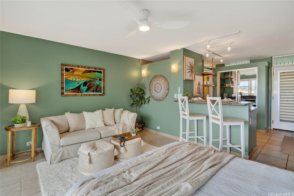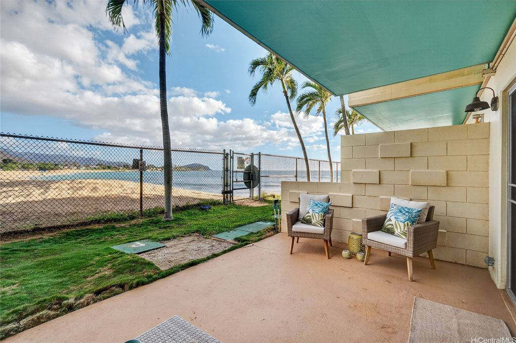 Experience true oceanfront oasis living at Makaha Shores"”the only condominium located directly on world-famous Makaha Beach. This rarely available ground-floor studio offers effortless island living, placing surf, sand, and shoreline within feet of your lanai. Thoughtfully upgraded with efficient, space-saving features, the home includes porcelain tile flooring throughout, movable track lighting, a cooling ceiling fan, and a queen Murphy bed for maximum flexibility. The kitchen features granite countertops and ample cabinet space, while the renovated bathroom offers a stylish step-in tiled shower. One of only six units with an enclosed front lanai, it also includes the only lockable surfboard storage of its kind - fits up to 10ft! Perfect for keeping beach gear secure and accessible. Assigned parking included. With no stairs from entry to unit, ground-floor convenience adds ease to daily living. Amenities include heated saltwater pool, BBQ area, on-site manager, coin/app laundry, and 24-hour security (both cameras and on-site personnel). Enjoy ocean views, steady coastal breezes, and a beautiful beachfront setting that offers a true oceanfront oasis on Oahu's west side.