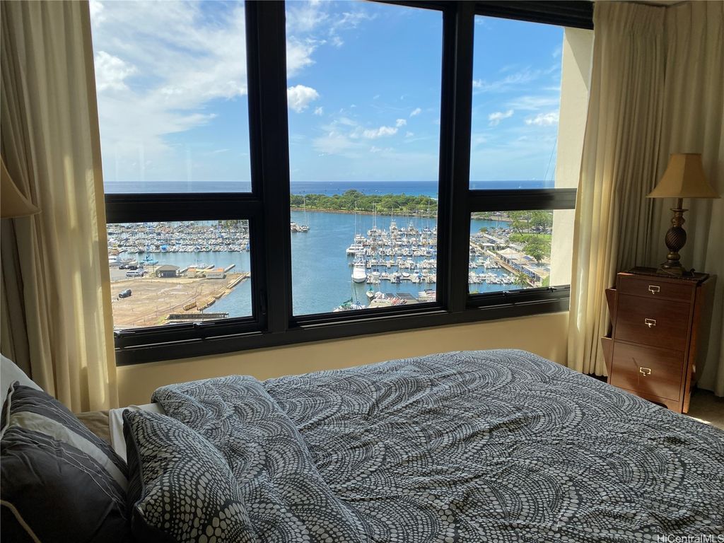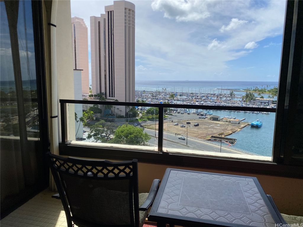 Available furnished 1 bedroom, 1 bathroom apartment on the 16th floor at YACHT HARBOR TOWERS (Diamond Head Tower) with 1 assigned parking stall. ** Appointments only by email. PLEASE NO PHONE CALLS. Email rental@hawaiianjoy.com 'rental(at)hawaiianjoy (dot) com' for inquiries. Monday to Fridays only. ** Initial lease starting at 6 months and month to month after. Located on corner of Ala Moana Blvd and Atkinson Dr across from Ala Moana Center and Ala Moana Beach Park. Unit includes full kitchen with gas oven and new cooktop, central a/c, new washer and dryer in unit, carpet flooring, shower/tub, drapery, and a spacious enclosed lanai with ocean views. Utilities include: electricity, water/sewer, hot water, basic cable TV, and internet. Building includes: 24/7 security, site manager, tennis court, rec deck, and pool. No pets, no smoking, no subleasing. Renters Insurance required at move in.