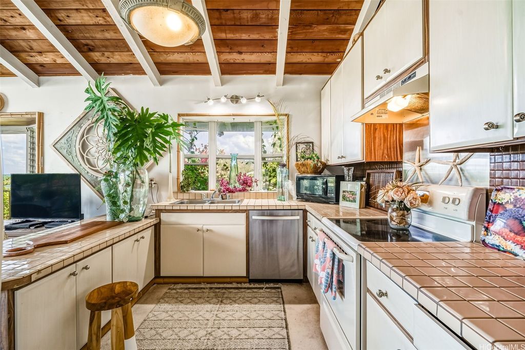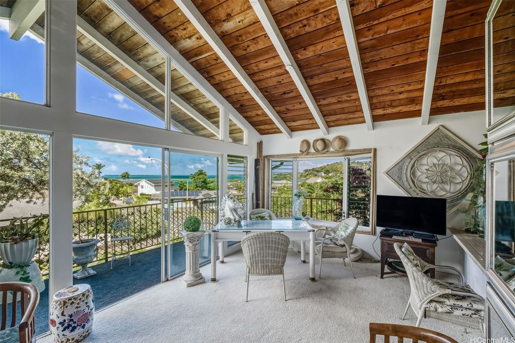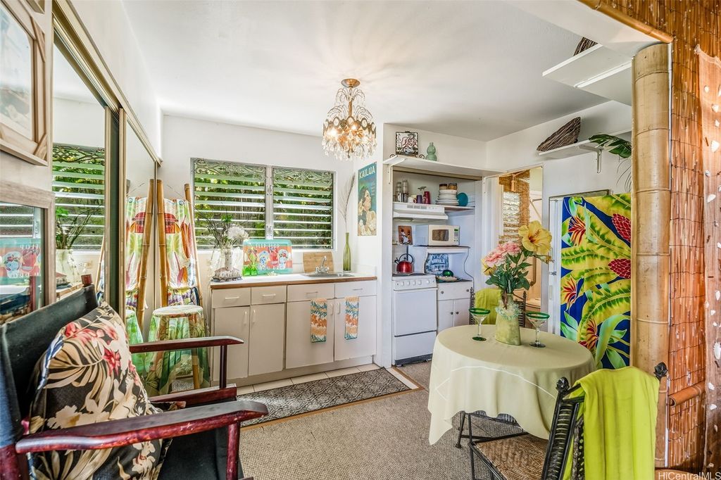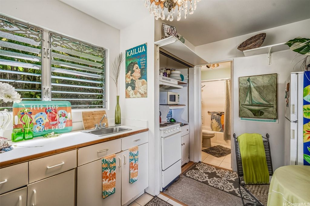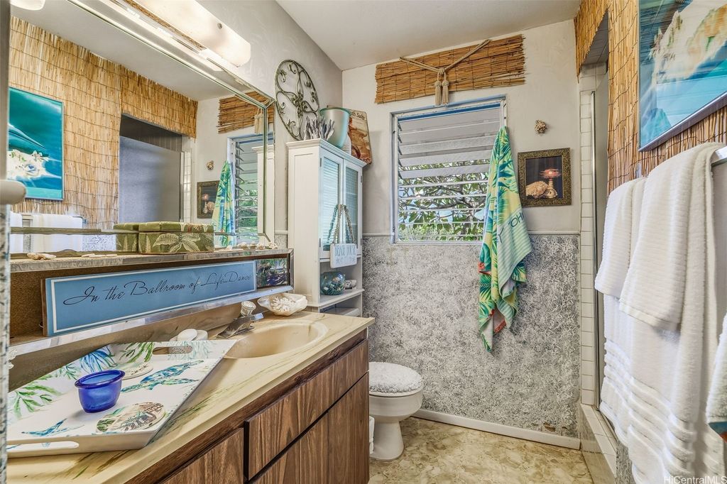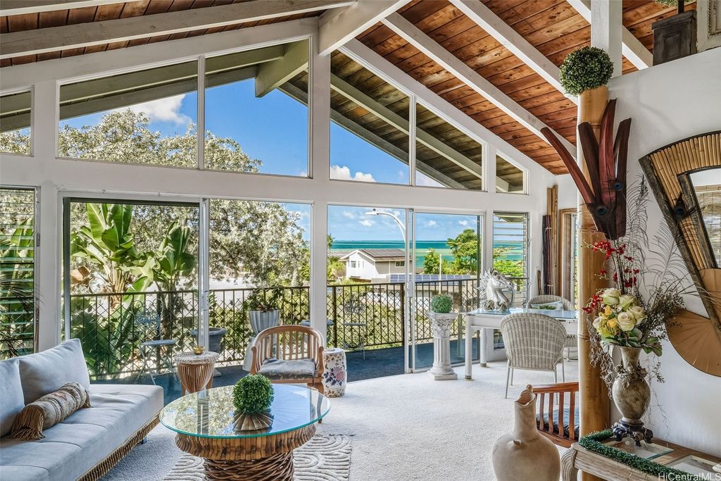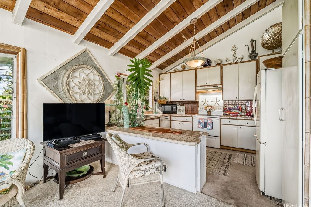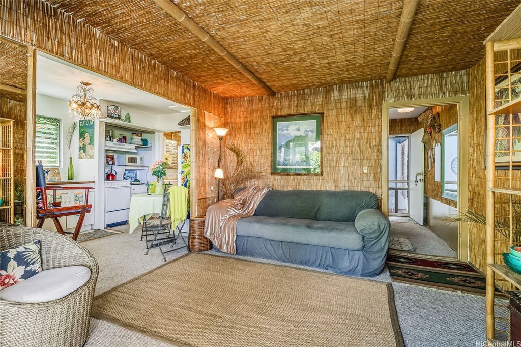 Step into paradise with this versatile and income-generating property in the highly desirable Alii Shores neighborhood! This 4-bedroom, 2-bathroom farmhouse style home can be rented out as the main home (3 bed, 2 bath) and a separate 1 bed, 1 bath cottage with its own kitchen/stove. Alternatively, this home can be rented out as 3 separate units as the main home's downstairs and upstairs have their own private entrances. This property offers stunning ocean views from the main living area, both the upstairs and downstairs lanais, and the backyard creating the perfect backdrop for relaxing or entertaining! Utilize this homes flexible floor plan ideal for multi-generational living or to produce rental income! Take advantage of the private, tree-lined backyard for added seclusion! This property is in a prime location with the windward mall/shopping, the H3 and Likelike HWY just minutes away for your convenience and for quick access to the entire island. The community has a private boat ramp, bathrooms and storage-forget about lines when you want to go to the sandbar! Additionally, the community has a generator ensuring safety in the event of a power outage or natural disaster!
