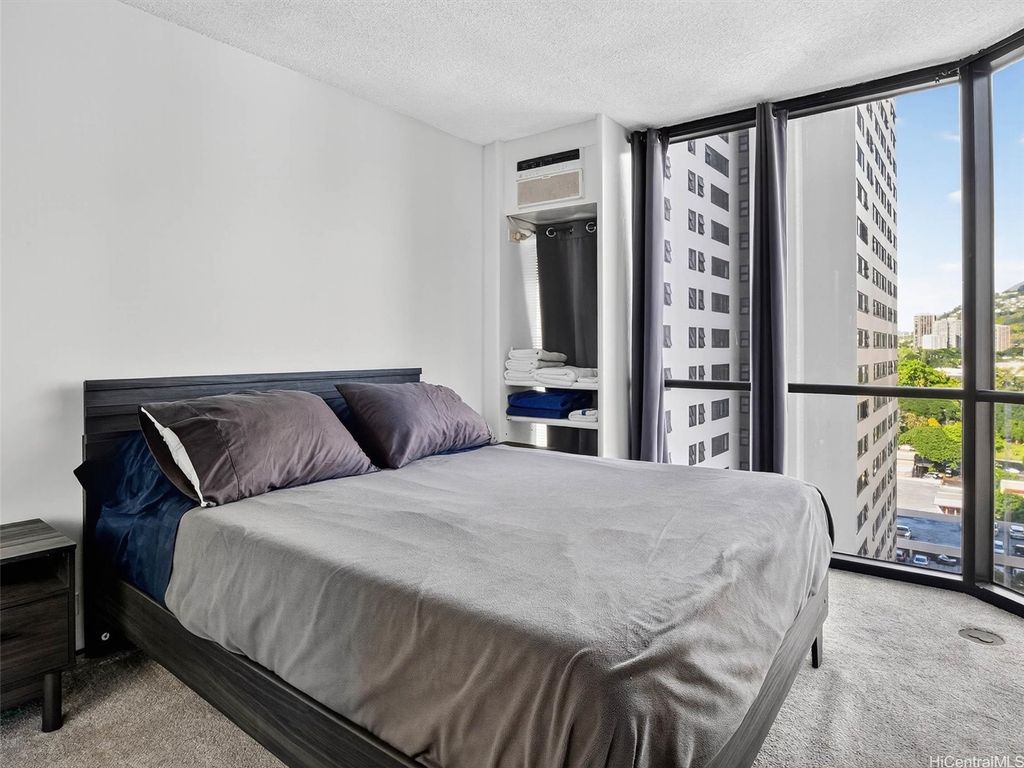 Welcome to urban paradise"”renovated and priced to sell! This charming 1-bedroom, 1-bath apartment at Honolulu Tower is a tranquil oasis in the heart of downtown. Step into a beautifully updated unit featuring floor-to-ceiling windows, fresh paint, a newer air conditioning unit, updated appliances, and sleek vinyl flooring in the living area. Enjoy peace and privacy in this quiet, well-appointed space, complete with a range, refrigerator, dishwasher, washer/dryer, and air conditioning for year-round comfort. Or, for a more eco-friendly option, simply turn off the AC, open the lanai doors, and let the island breeze cool you down"”perfect for saving on electricity while embracing the tropical lifestyle. Honolulu Tower offers a full suite of amenities including a swimming pool, BBQ area, recreation space, 24-hour security, and controlled access for your convenience. A dedicated parking stall is included, along with four visitor spots for your guests. Live at the center of it all"”Downtown, Chinatown, local eateries, access to H1, and hospitals. Plus, you're minutes from Costco, Home Depot, Lowe's, Best Buy, movie theaters, Ala Moana Shopping Center, and Kaka'ako.