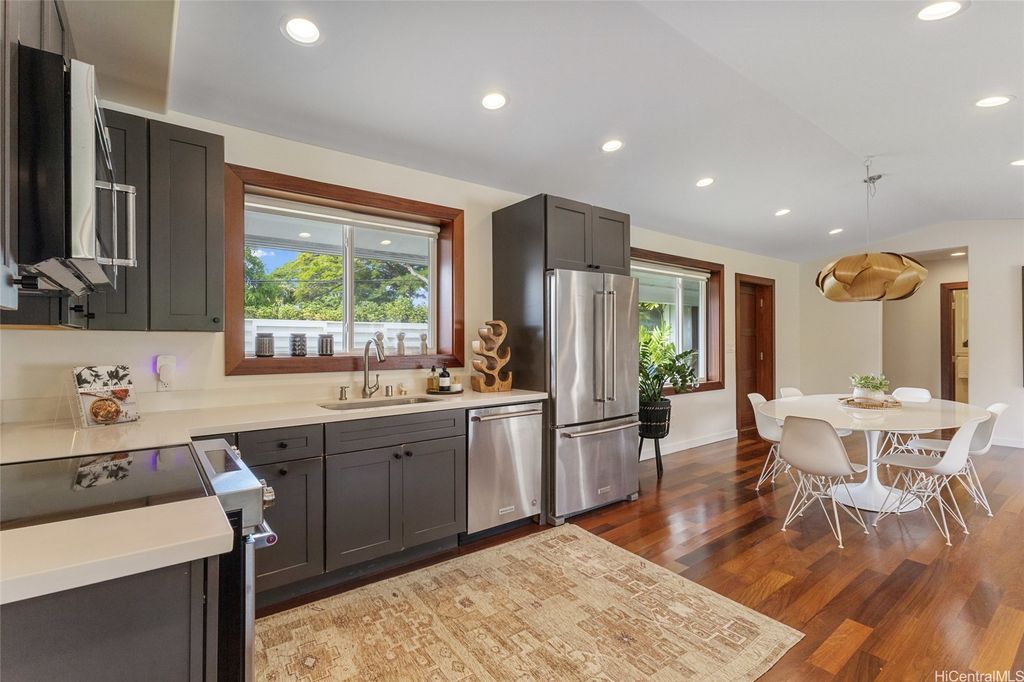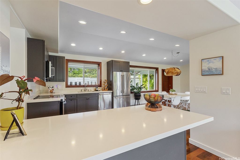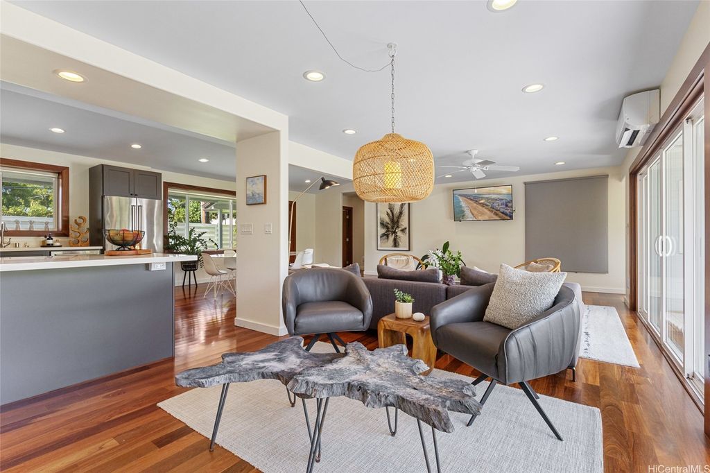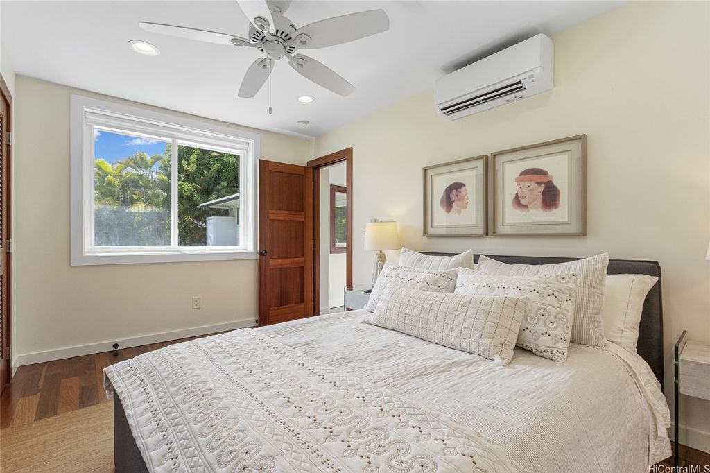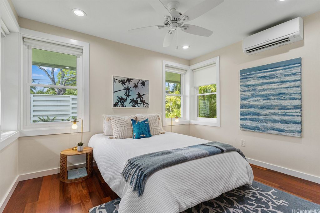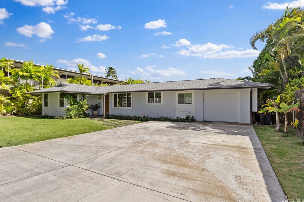 Experience the best of both worlds with this exceptional property, offering a sprawling yard and quick access to the beach. This home has been elegantly upgraded with premium materials, and you'll stay comfortable year-round with the outstanding split AC systems throughout. Featuring 5 bedrooms and 3 full bathrooms, this residence provides an ideal blend of ample living and outdoor space, set on a generous 12,716 sq ft lot. Enjoy the vast expanse of lush, flat green grass, perfect for play, alongside an outdoor open lanai for entertaining friends and family. Plus, delight in picking fresh citrus for your beverages from the yard's fruit trees. Just a short walk to the stunning Kailua Beach, this incredible home makes sunrise views, swimming, kiteboarding, surfing, and paddling effortlessly accessible!