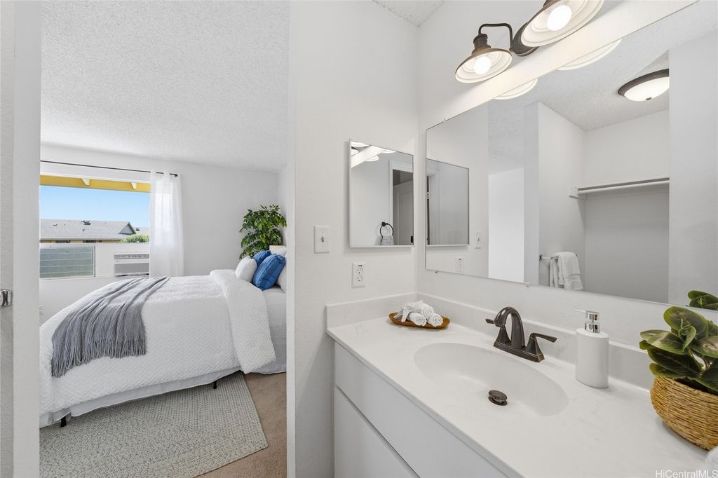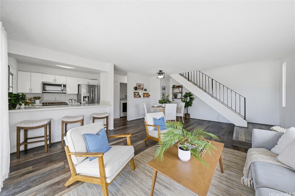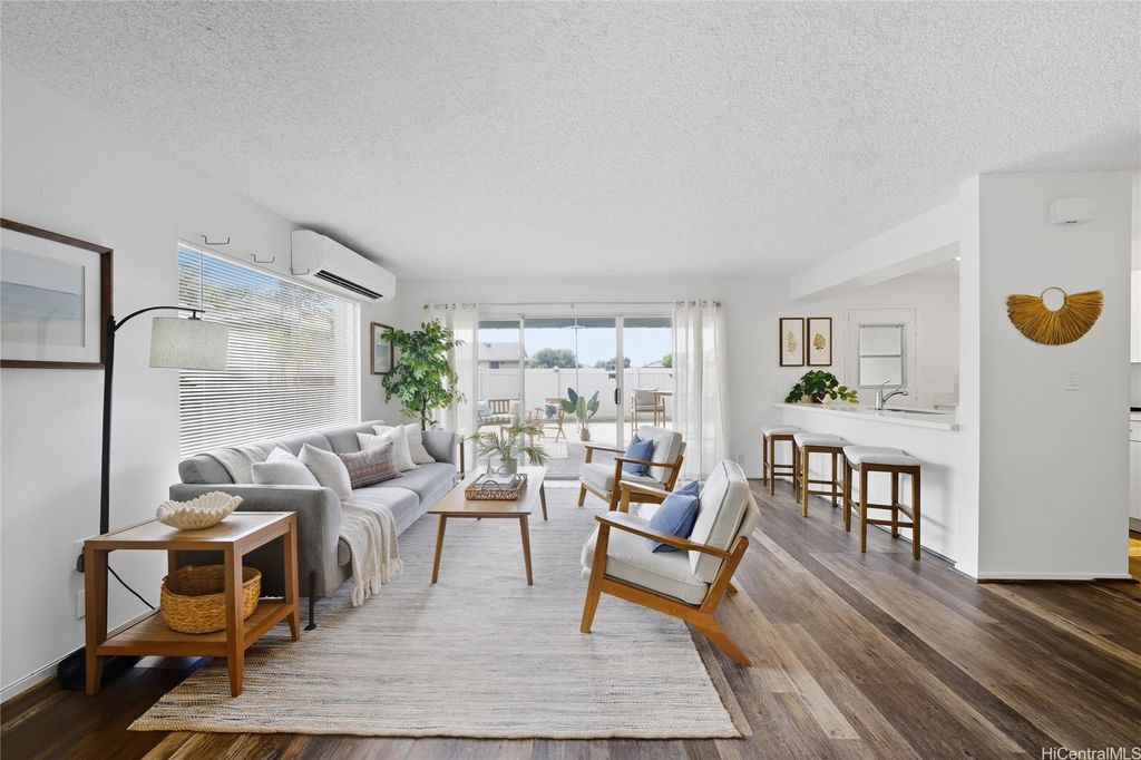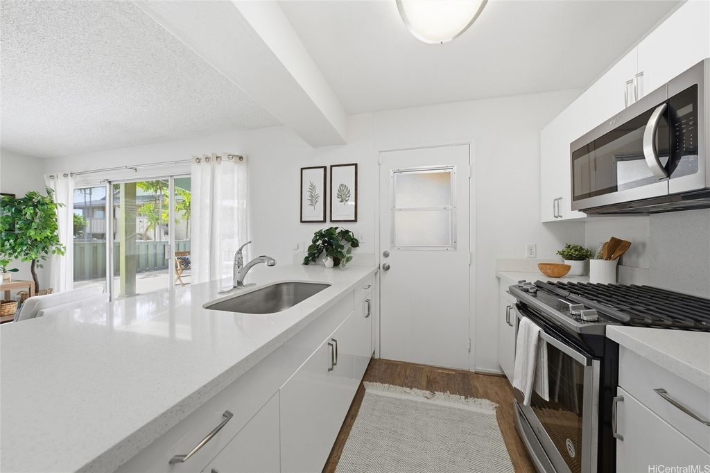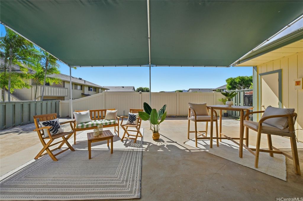 This inviting Penakii townhome in Waipio Gentry is ready for you! The floor plan is open & spacious with easy flow between the living room, kitchen, dining & outdoors. The kitchen has been renovated recently with a clean, modern look & stainless steel appliances. This property has a nice vibe with a good blend of modern contemporary elements while maintaining comfort. Laundry is discretely but conveniently located near the kitchen. A half bathroom is located downstairs. This corner location offers a large, fenced outdoor space with multiple potential uses. Entertain a large group or just enjoy the private space solo. Two of the bedrooms upstairs are roomy with views of the Waianae Range. The primary suite has a walk-in closet and dedicated vanity. Each room has air conditioning. Exterior paint was just completed. Roofs replaced in 2018. Penakii is a quaint community among single family homes. A community path to that leads to Kaneolani Elementary & a public park is close by. Central Oahu Regional Park with a competitive pool complex, tennis courts, baseball & soccer fields is in close proximity. Waikele Shopping Center, Safeway, Foodland, & Costco are too! Open House 10/26th 2-5.