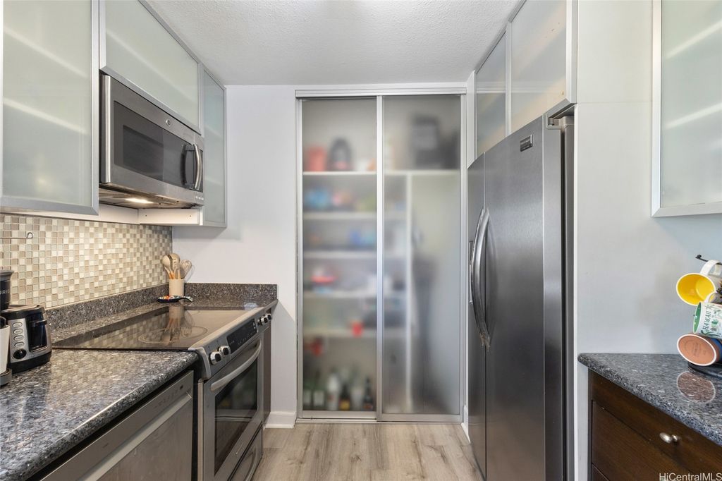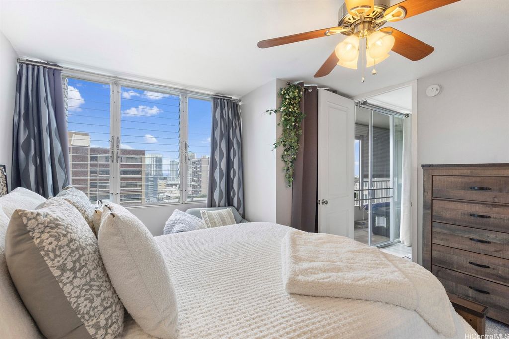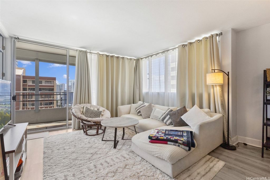This rare corner-end 2Br/2Ba condo unit has been tastefully upgraded, move-in ready! A sufficient floor plan with an open lanai to enjoy the brilliant colors of the city light views. Improvements include wood floors, kitchen granite counter with custom cabinets, refinished shower walls and many more to appreciate. This unit has completed the HOA's re-pipe replacement project. This condo comes with 1 covered assigned stall and there are secured areas for bicycles and surfboards. Sky tower apts is a secured, well maintained/well managed residential condo bldg, plenty of guest stalls, high owner occupancy and short convenient access to freeway access, hospitals, downtown Honolulu, great shops and eateries in nearby Kaka'ako, parks, weekly farmer's market, performing art centers, any more more essentials in the metro Honolulu/Punchbowl neighborhood.