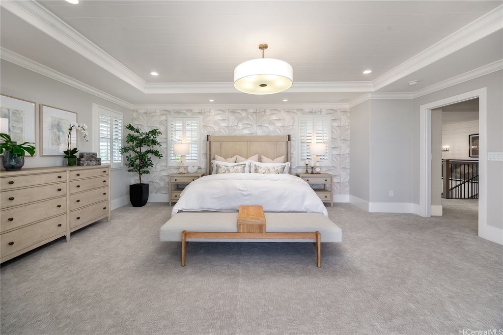 Step into refined coastal luxury with this expansive new construction residence, offering over 4,000 square feet of beautifully designed living space. With five bedrooms, four-and-a-half baths, a dedicated study, a covered lanai, and a private courtyard, this home seamlessly blends functionality with sophistication"”perfect for both peaceful retreat and vibrant entertaining. Enjoy sweeping ocean views and a full suite of elevated features, including central air conditioning, a 120-gallon solar water heater, EV charger readiness, and accommodations for a photovoltaic solar electric system. The gourmet kitchen is thoughtfully appointed with top-tier appliances: a 42" built-in Sub-Zero refrigerator, Wolf induction cooktop, convection oven, microwave with drop-down door, and an Energy Star-certified Bosch dishwasher"”all designed for culinary excellence. Outdoors, professionally landscaped front and rear yards with automatic irrigation offer a lush, low-maintenance setting for gathering, relaxing, or simply enjoying the breeze. Pohinahina 75.20 B (R) floorplan Kekainani at Hoakalei | One of the final 32 luxury residences in the prestigious Kuapapa neighborhood.