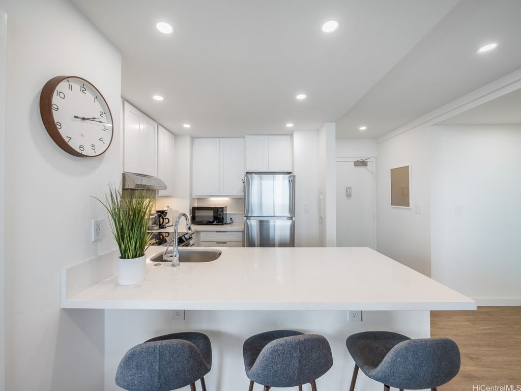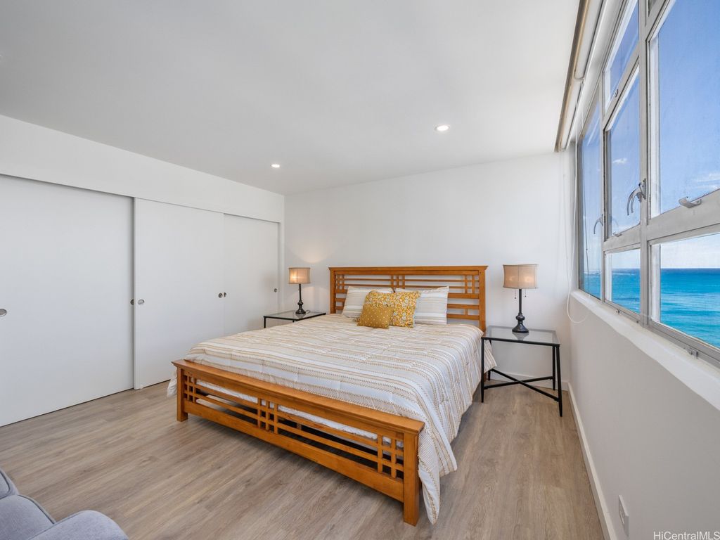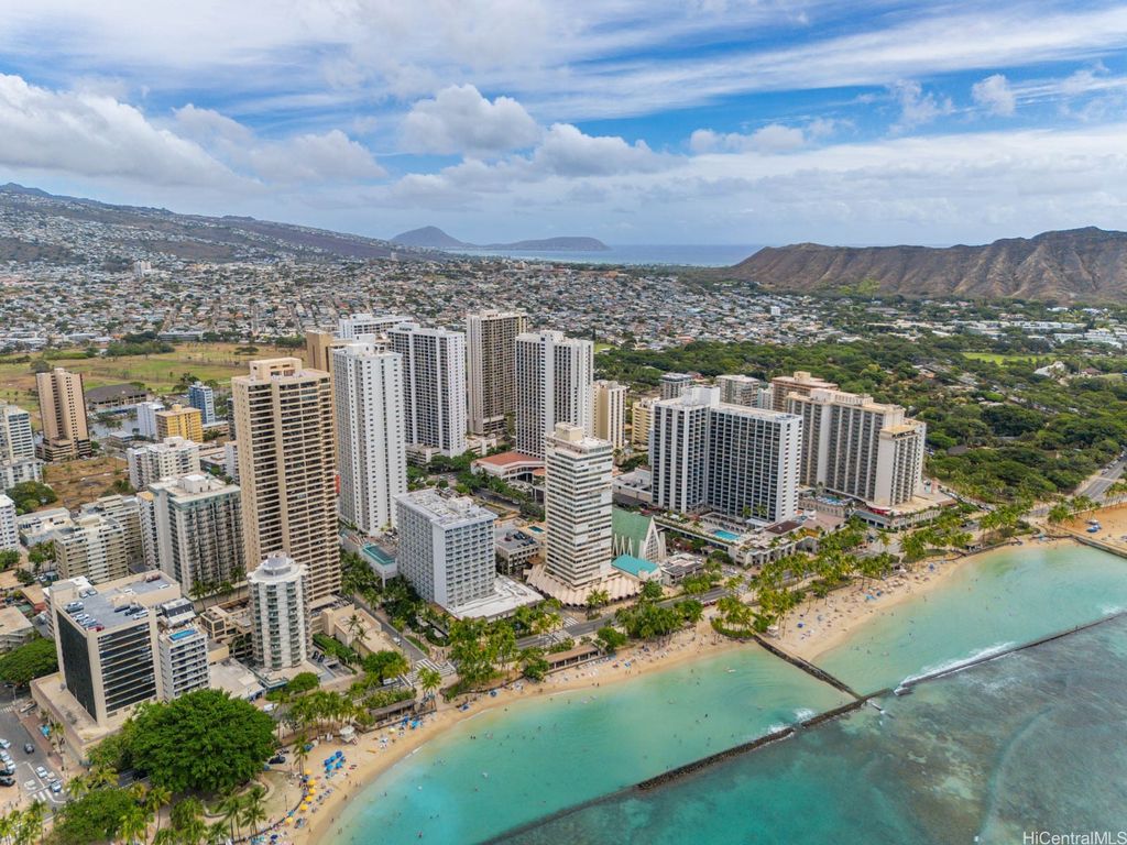 Live the beachfront lifestyle in this beautifully updated 1-bedroom, 1-bath condo at Foster Tower- an oceanfront building directly across from Waikiki Beach. This FEE SIMPLE unit features a brand-new kitchen with stainless steel appliances, a newly renovated bathroom, modern flooring, and the convenience of an in-unit washer and dryer. Enjoy stunning ocean and beach views, and step outside to world-class shopping, dining, and entertainment just moments away. Comes with an assigned parking stall. The secure, well-maintained building offers resort-style amenities including a newly renovated gym, sauna, and pool. Zoned Resort, Foster Tower allows minimum 30-day rentals (per house rules), making it ideal for both personal use and investment. *Some photos have been virtually decluttered. First Open House Sunday, October 26th, 2-5 pm.
