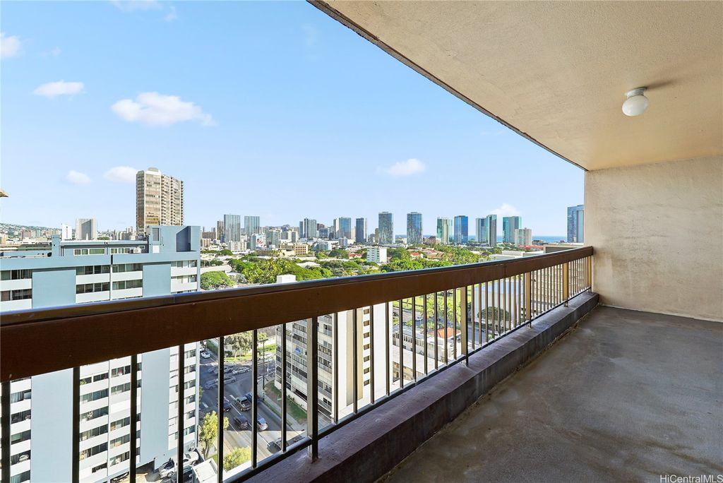 Kinau Lanais #1503 offers the perfect blend of modern comfort and convenience in the heart of Honolulu. This beautifully updated condo features a bright, open layout with tasteful finishes throughout. The kitchen and bathroom have been refreshed, and the home includes the added convenience of in-unit laundry and a charming barn-style door accent. Enjoy sweeping city and mountain views from your expansive private lanai, ideal for relaxing after a busy day. The building features a swimming pool, low maintenance fees, assigned parking, and even has guest parking for visitors. Centrally located near shopping, dining, hospitals, downtown Honolulu, and freeway access, this residence provides easy access to everything Honolulu has to offer! With nothing left to do but move in, Unit 1503 is an excellent opportunity to own an updated condo in a fantastic location with beautiful views, great amenities, and exceptional value.