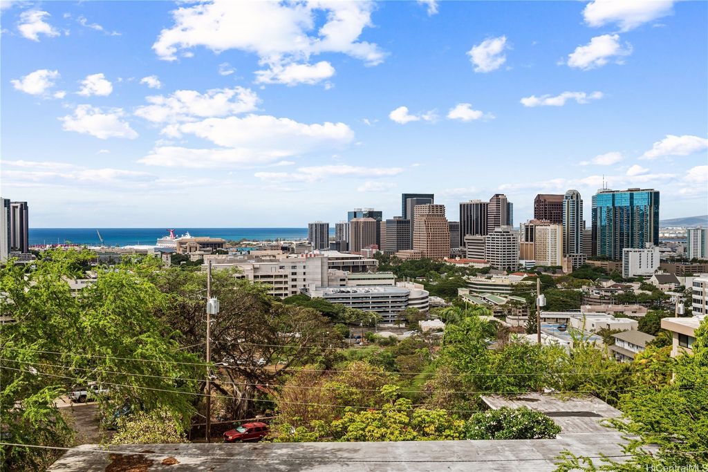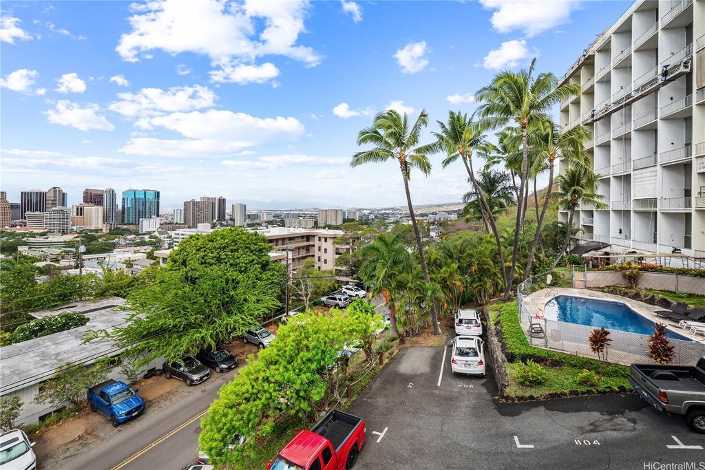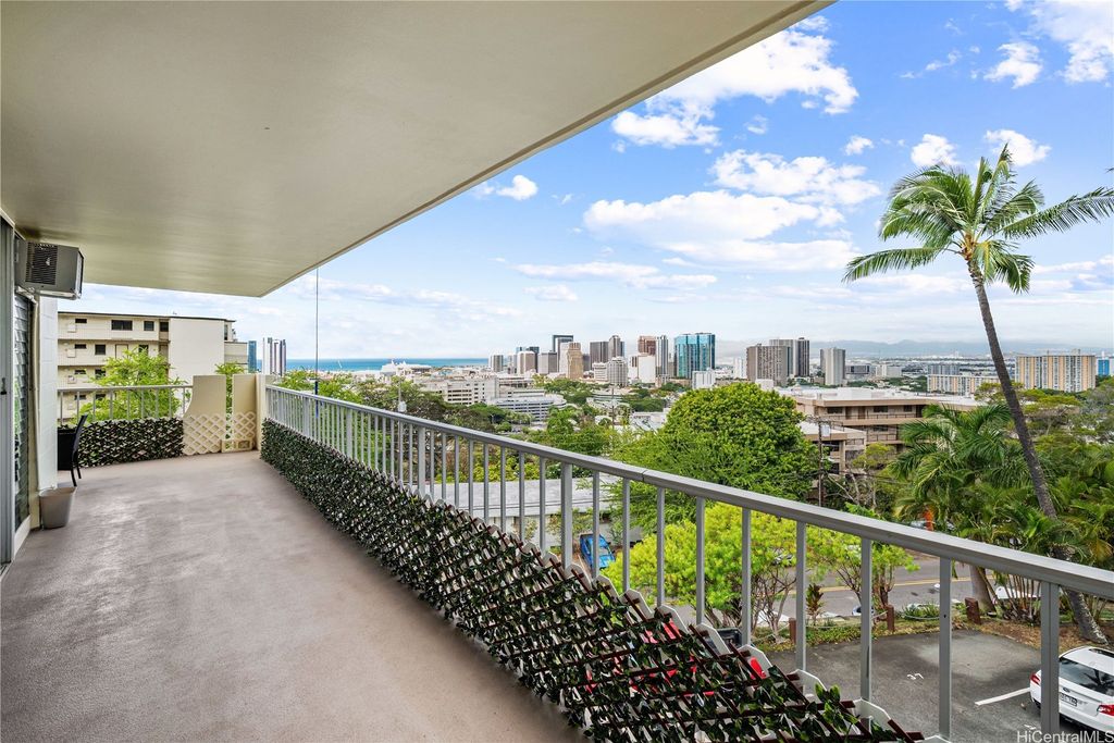 Experience island living at its best in this charming 1-bedroom END UNIT just minutes from downtown Honolulu! Enjoy the convenience of city life while coming home to your own private retreat with sweeping OCEAN and MOUNTAIN VIEWS! The spacious wraparound lanai on the most scenic side of the building is perfect for relaxing, entertaining, or taking in the sunset after a long day. When measured, lanai shows as 277 sq ft - indoor/outdoor living at its finest! Inside, you'll find a layout with plenty of natural light and refreshing trade winds. The flooring, bathrooms and kitchen were renovated around 15 years ago. The washer/dryer combo was just purchased in May 2025, and the dishwasher is brand new. Other recent improvements have been new awnings added in 2022, interior living room walls painted, and screens/sliding glass door rollers replaced in 2025. Furniture can be purchased separately. Building is pet friendly, has a pool, and your covered, separated parking stall is right at the driveway entrance. Plenty of street parking right below on Prospect St, for guests or a second car. Seller will credit buyer 1 year of maintenance fees for the first year with a full price offer.