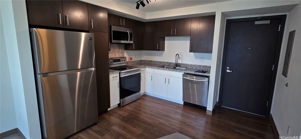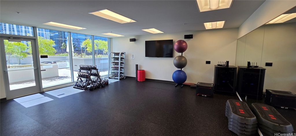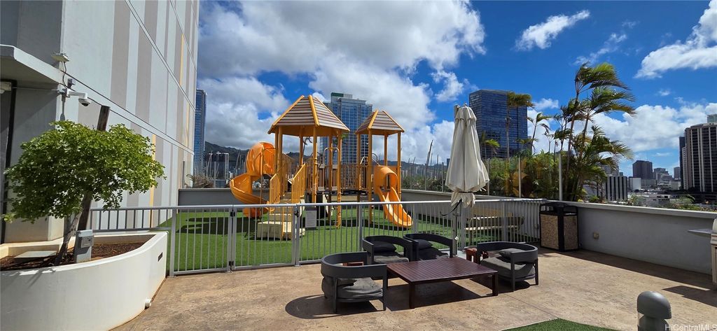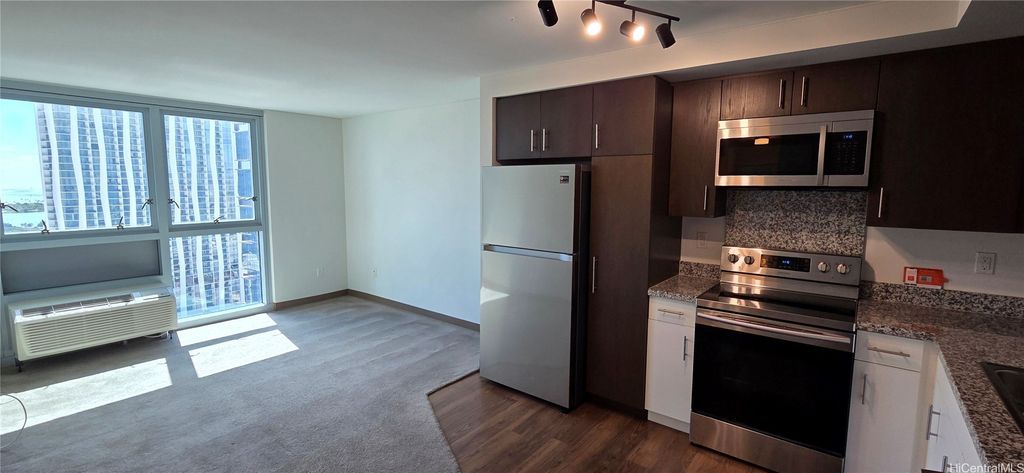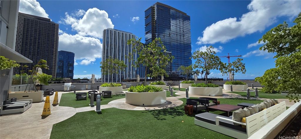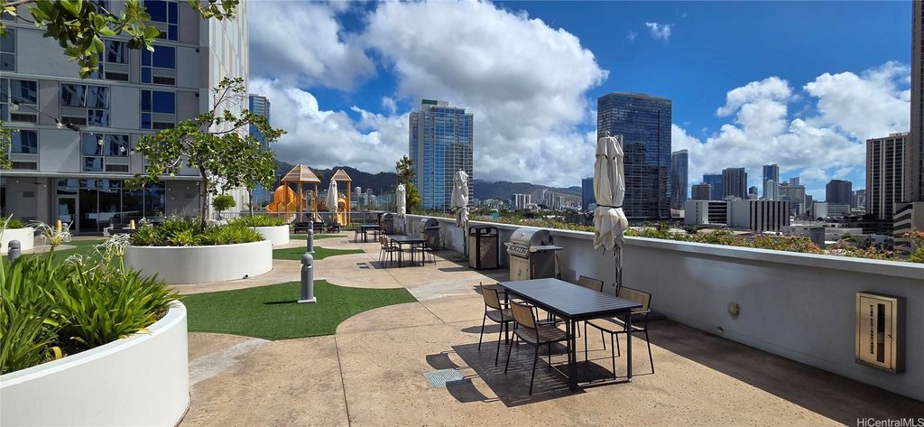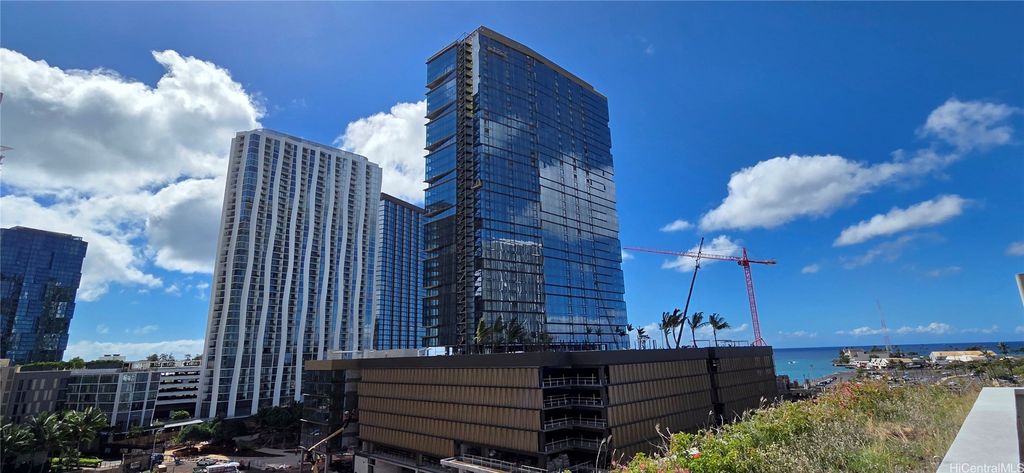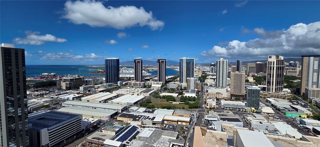 Live the Kaka'ako Lifestyle! 2 bedroom, 2 bath unit with 1 assigned parking stall. Newer Kaka'ako residence with everything you need. This modern secured building features east facing /city and ocean views. Kitchen offers granite countertops, stainless-steel appliances, dishwasher, disposal, range and microwave hood. Air conditioning and big windows keeps the unit bright and cool! Full size washer and dryer in the unit. Building features lots of amenities to include, Gym and Fitness Rooms, recreation rooms, playrooms for children, playground, BBQ area and grills, Meeting, Co-Working Rooms, Cinema, Lounge, Karaoke Rooms and much more! Even enjoys penthouse-like views from the 38th Floor Sky-Lanai! On-site Manager and Security . This home has soo much to offer! Water/sewer included.