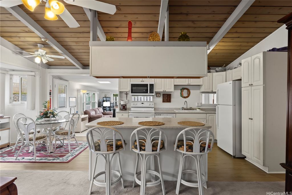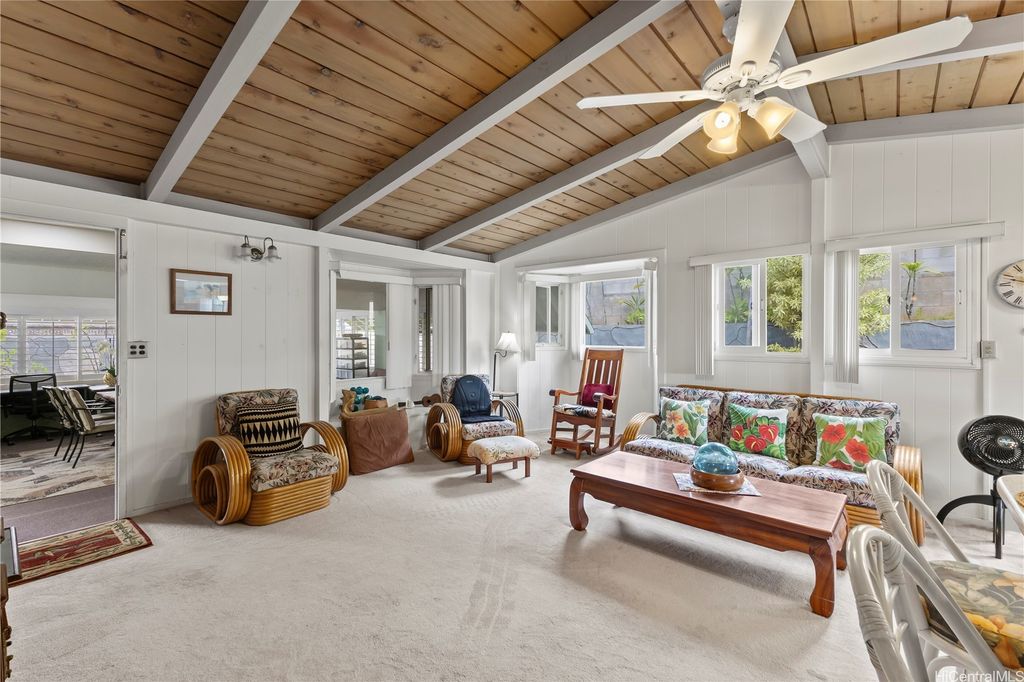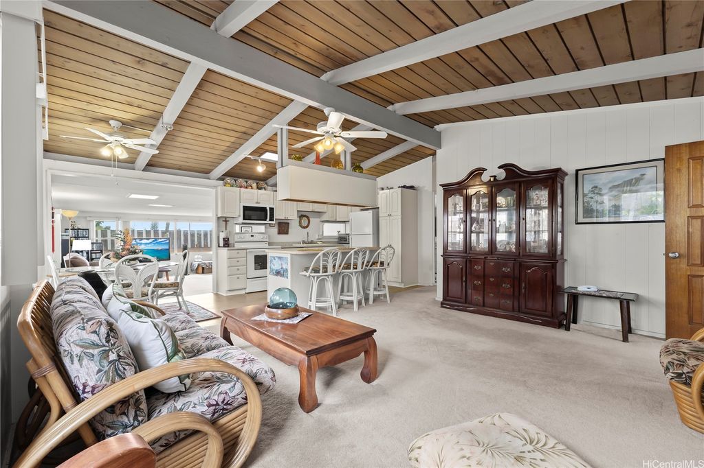 E komo mai! Hale Aloha - a spacious and unique family home in Pacific Palisades. Very attractive curb appeal, with a beautiful Honu mosaic wall, secured parking, PV gates and rocks walls. A semi-enclosed space is adjacent to the carport, perfect for a man cave, kid zone, craft area, party room - your choice. The interior is large, bright and welcoming. Extended bedrooms. The family room opens to a large covered patio, with peekaboo ocean views. The level yard would be great for children or pets. Some areas not reflected in tax records.