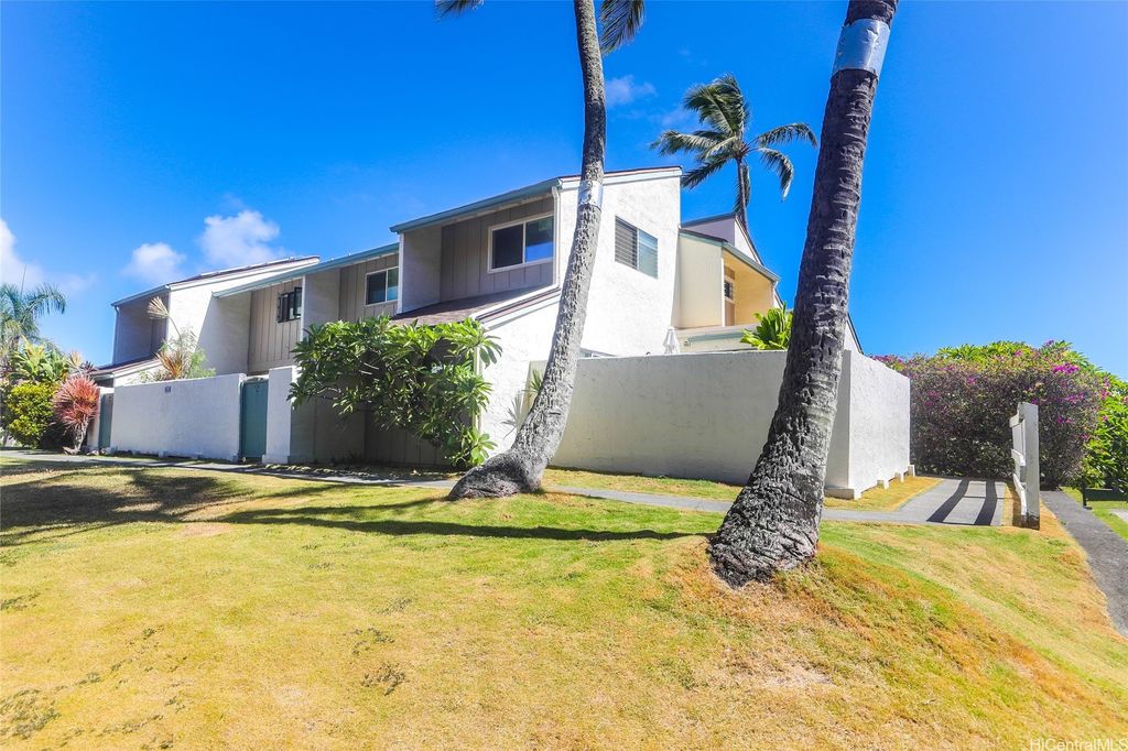 Great corner unit in Aikahi Gardens now available! Aikahi Gardens is a complex conveniently located close to the Marine Base, H-3, Safeway shopping center (with a Japanese restaurant, Starbucks, a veterinarian and much more) and of course world famous Kailua Beach. This freshly painted unit has a private entrance on the Kailua side of Oko Street and two great close parking places in the shade! Features include a desirable floorplan with the primary bedroom (and a full bathroom!) on the first level opening up to the private enclosed courtyard. Upstairs are two more bedrooms and another full bathroom. The back lanai opens to large grassy area perfect for kids or just enjoying the view. A short walk away is the large sparking pool, spa - big enough to swim laps in and hours of fun for the kiddos! An open air clubhouse large enough to hold parties in is the cherry on top.