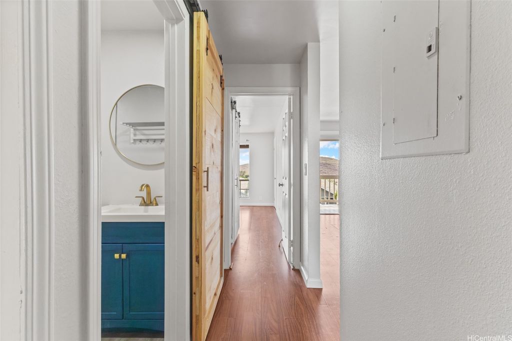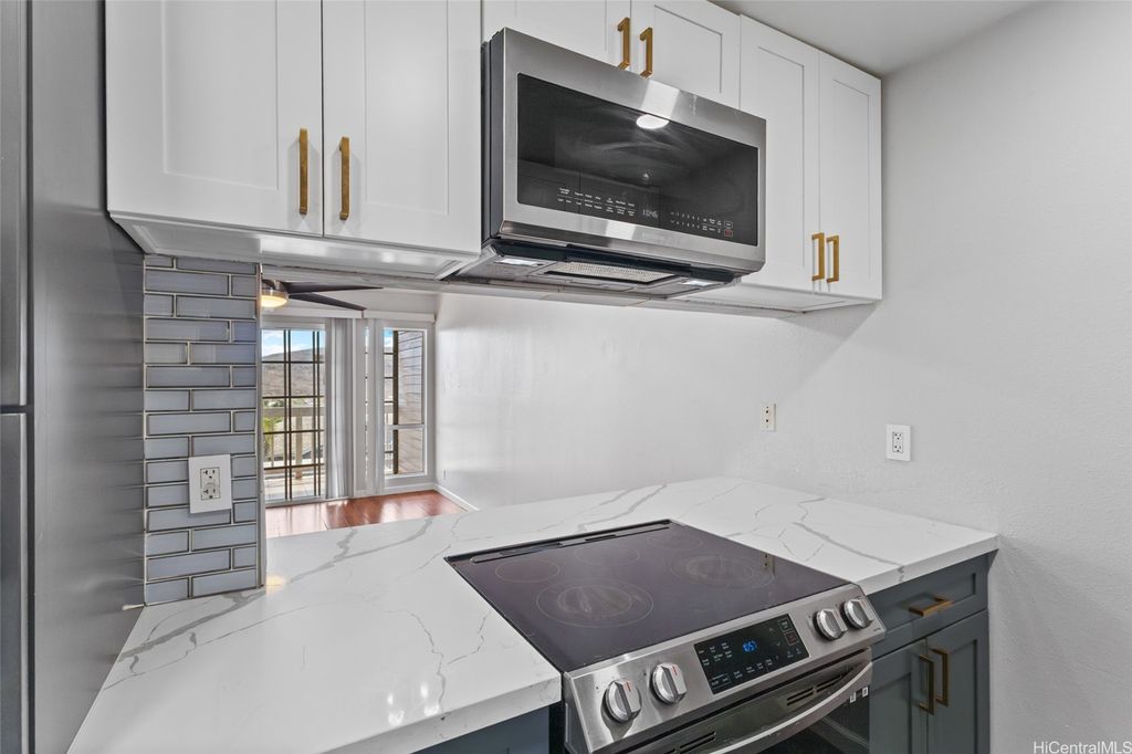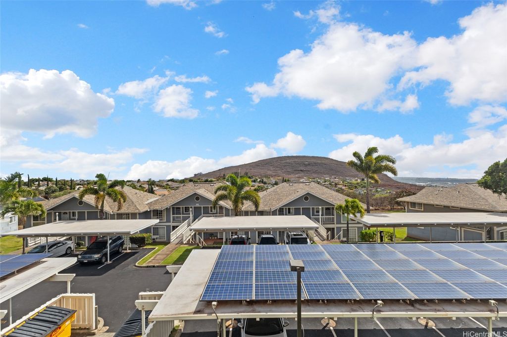 Makakilo Cliffs 2 Bedroom, 2 Bath with Ocean Views; Beautifully remodeled in 2023, this move-in-ready home features a brand-new kitchen, two fully renovated bathrooms, new ceiling fans, and custom closet systems throughout. The in-unit washer and dryer were purchased in 2024, adding everyday convenience to the thoughtful upgrades. Located on the same level as its two covered parking stalls no stairs required this home combines modern comfort with effortless accessibility. From the lanai, enjoy refreshing trade winds and sweeping ocean views. Set within the serene Makakilo Cliffs community, you're just minutes from Kapolei's shopping, dining, schools, and entertainment.