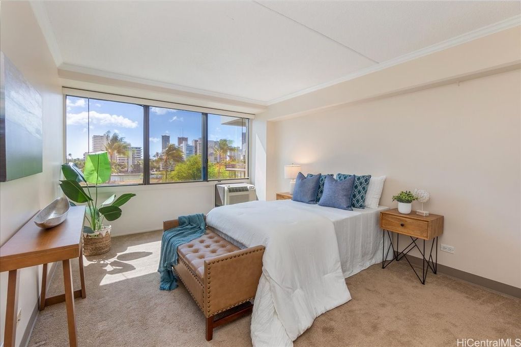 Discover an exceptional buying opportunity with this corner-end 2BR/2BA/1PKG condo, offering unbeatable value! Located on the desirable low 4th floor, you'll enjoy easy access and stunning views of the community park, Ala Wai canal, and the vibrant lights of Waikiki. The spacious wrap-around covered lanai is perfect for relaxation. Inside, the unit features a fire sprinkler system, washer, dryer, and a practical floor plan. Marco Polo is a secure building just minutes from Waikiki, the University of Hawaii, bus lines, golf courses, and a variety of dining options in the culturally rich Moiliili neighborhood. Experience the exciting transformation of Marco Polo, now one of the best-upgraded buildings in the area, boasting new piping and a retrofitted fire sprinkler system for your safety and peace of mind. Enjoy fantastic amenities, including a recreation deck with six BBQ grills, basketball and tennis courts, paddle tennis/pickleball, and a driving range for residents and their guests. The garden area features a swimming pool, complete with men's and women's saunas, showers, and restrooms. Enjoy peace of mind w/ 100% hurricane insurance coverage and it's a VA approved bldg.