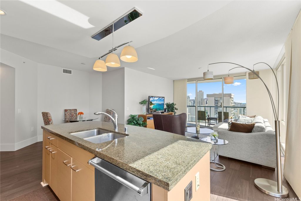 Experience luxury island living at Allure Waikiki! This beautifully maintained 2-bedroom, 2-bath residence features an open-concept layout with modern finishes, a spacious lanai, and stunning city, ocean, and mountain views. Enjoy resort-style amenities including a pool, fitness center, BBQ area, and 24-hour security. Conveniently located near world-class Ala Moana shopping, dining, and Waikiki Beach. Perfect for a primary home, vacation retreat, or investment property.