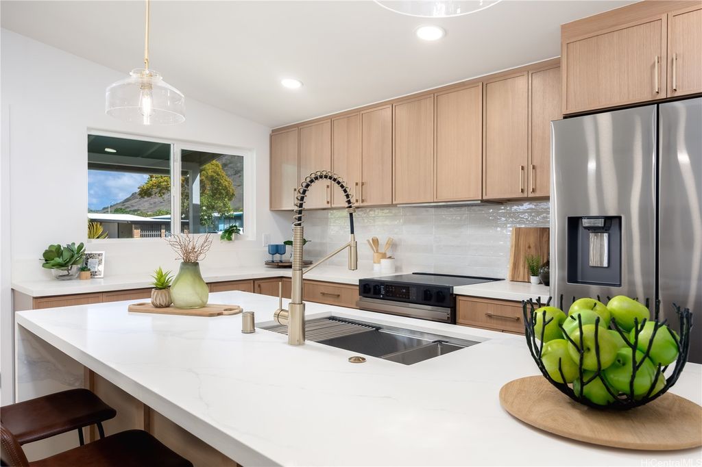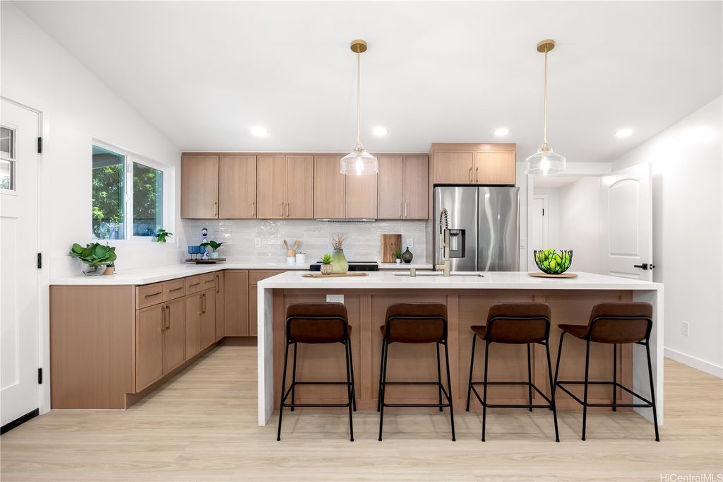 Feels Like two large homes in one! This refined Koko Head Terrace home is the ultimate blend of luxury and flexibility. Perfect for multi-generational living, rental income, or an elegant Ohana retreat, the property showcases captivating Koko Head views and a thoughtful layout designed for comfort and versatility. The main home features 4 bedrooms and 2 baths with an airy open-concept living space, elegant luxury vinyl plank flooring, quartz countertops, and modern finishes throughout. The incredible upstairs primary suite offers stunning views, a spacious walk-in closet, and a peaceful retreat. A completely separate and expansive 1-bedroom, 1-bath dwelling with its own entrance features a generous living room, separate washer dryer hookup, and is ideal for a rental, guests, or your Ohana. Total Enjoy two serene lanais, a lush landscaped yard, and a mature mango tree creating a tranquil outdoor oasis. With a new roof and stylish upgrades blending contemporary elegance with island charm, this property defines premier East Oahu living"”minutes from pristine beaches, scenic hikes, and vibrant dining.