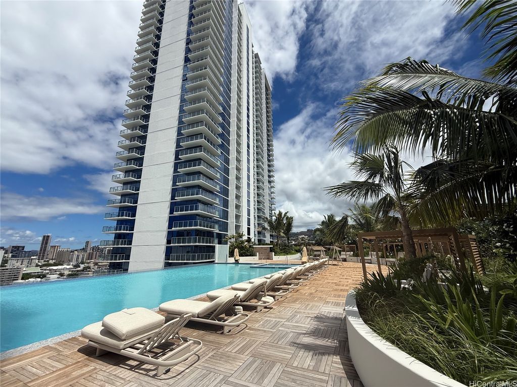 Expansive floor-to-ceiling windows on this high floor residence at the brand-new Park on Keeaumoku frame stunning city skyline views, filling the home with natural light by day and sparkling city lights at night. Sleek modern finishes, split A/C, and energy-efficient appliances create a stylish and comfortable urban retreat. Residents enjoy resort-style amenities including an infinity pool, spa, movie theater, co-working lounges, and BBQ cabanas. This is your opportunity to experience the best of modern Honolulu living. No smoking, No pet allowed. Tenants with service animal or emotional support animal must disclose at the time of submitting an application and provide proper certificate or paperwork.