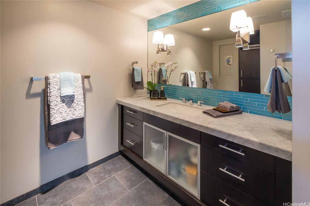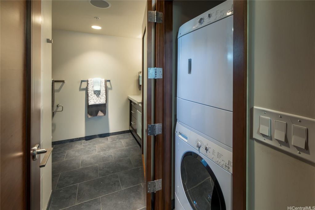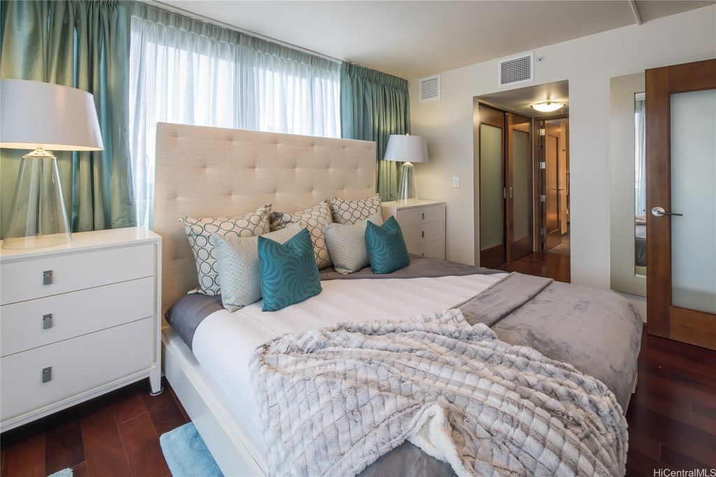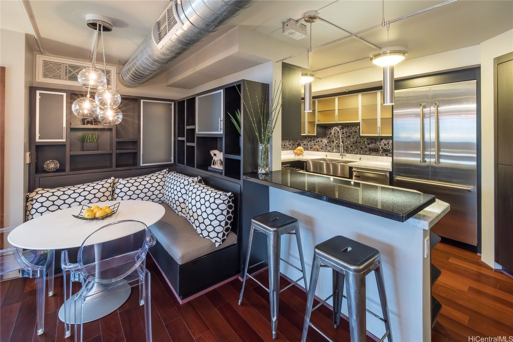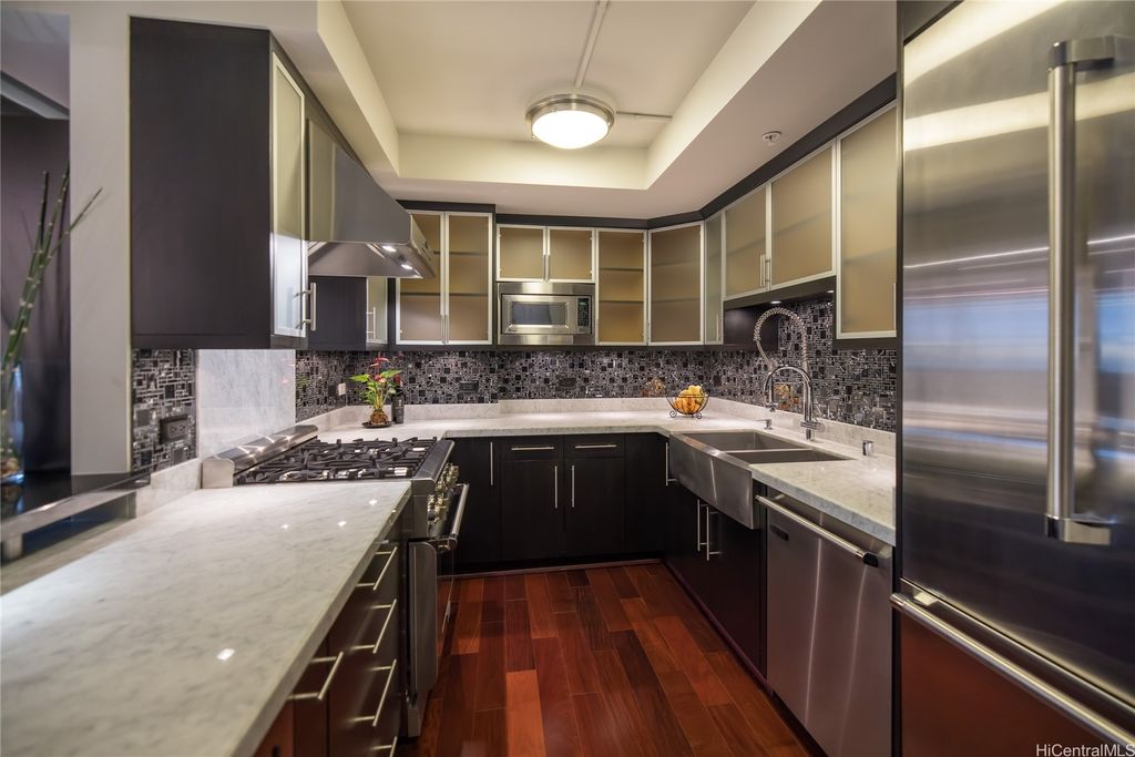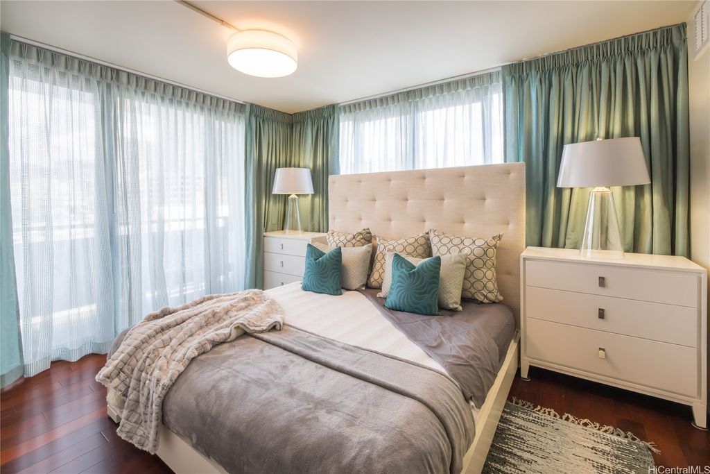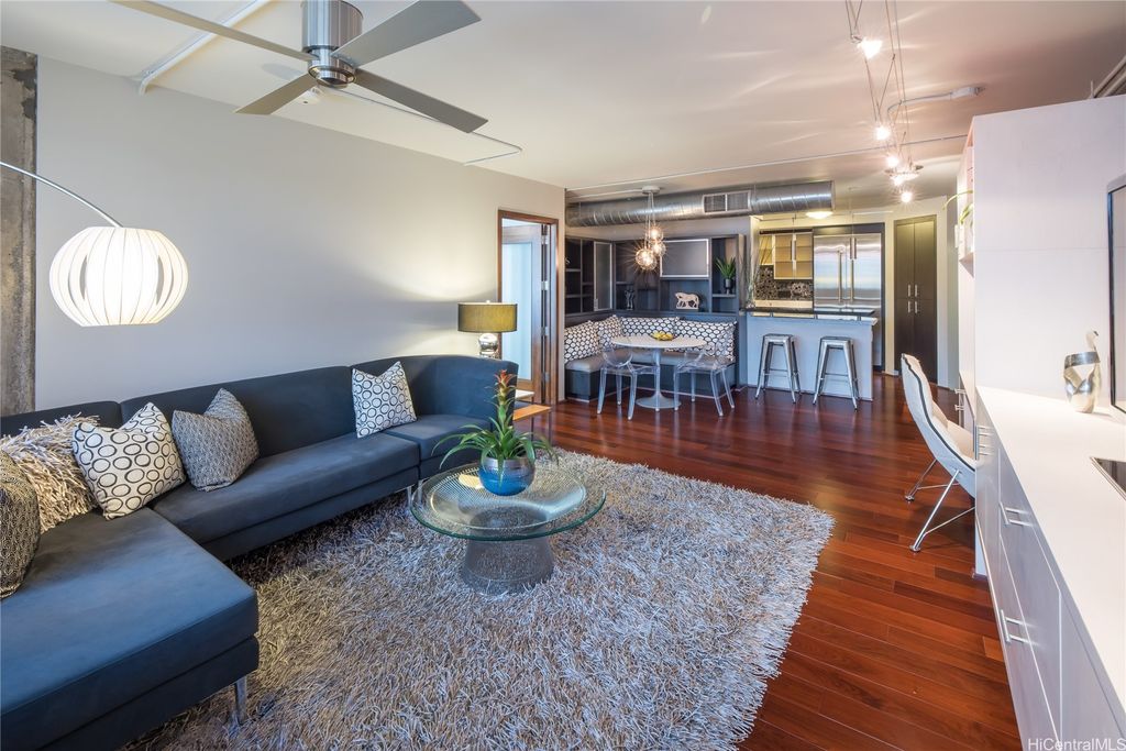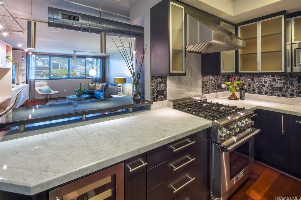 Modern loft apartment with high ceilings, industrial oversized windows in trendy Kakaako available December 16, 2025. This furnished one bedroom has all the bells and whistles for luxurious city-living. Interior designed by Philpotts - Holly Boling-Ruiz. Mountain facing unit that captures the breezes. Gourmet chef kitchen with a gas Thermador stove, large double sink, flowing marble counter space, industrial appliances, and two california closets. Central A/C, secured covered parking on the first floor with 3 storage cabinets close to the entrance door. Amenities include a heated salt-water pool, whirlpool, cabanas, bar-b-que, and a deck entertaining area. Guest parking is in front of the building. $30 nonrefundable application fee per adult. NO PETS, smoking/vaping, co-signers or site unseen applications. Must see in person and 24 hour notice to show. Renters insurance required - $300K minimum liability. Call office for all showing requests. NOT INCLUDED: Mattress, linens, kitchenware, pillows. Tenant pays electricity, cable/internet. Minimum 6 month lease.