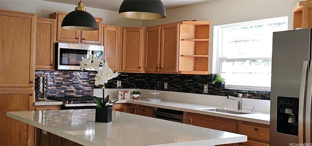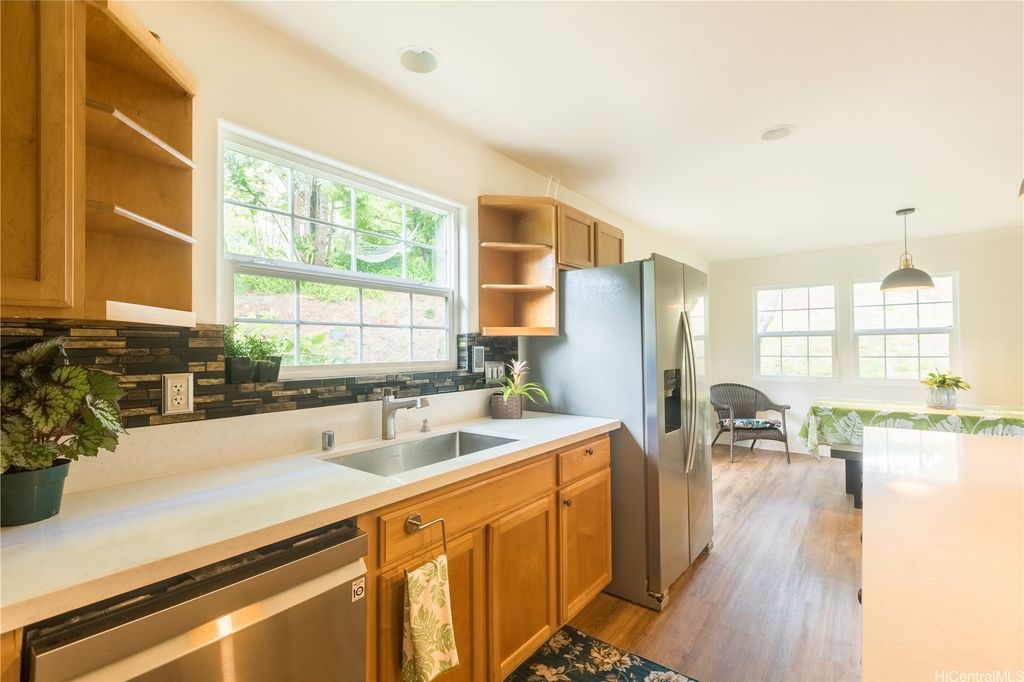 Retreat to your private oasis on a quiet cul-de-sac in Kamuela, on the Big Island! This exceptional country home has 4 bdrms/3 baths on an expansive, artfully landscaped lot with panoramic views of Mauna Kea & surrounding mountains. Located on the greener side of Kamuela, the property boasts an impressive design blending modern amenities with classic Hawaiian style. The remodeled kitchen offers the latest appliances and it's the perfect spot for relaxation, contemplative moments, entertaining & hosting memorable family gatherings. The property includes a one bdrm/one bath on ground floor, & the primary bedroom is spacious with a sitting area, a walk-in closet & its own en-suite bath with a walk-in shower. Conveniently located.