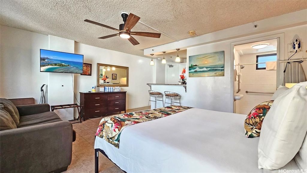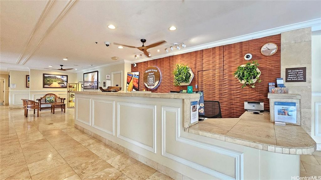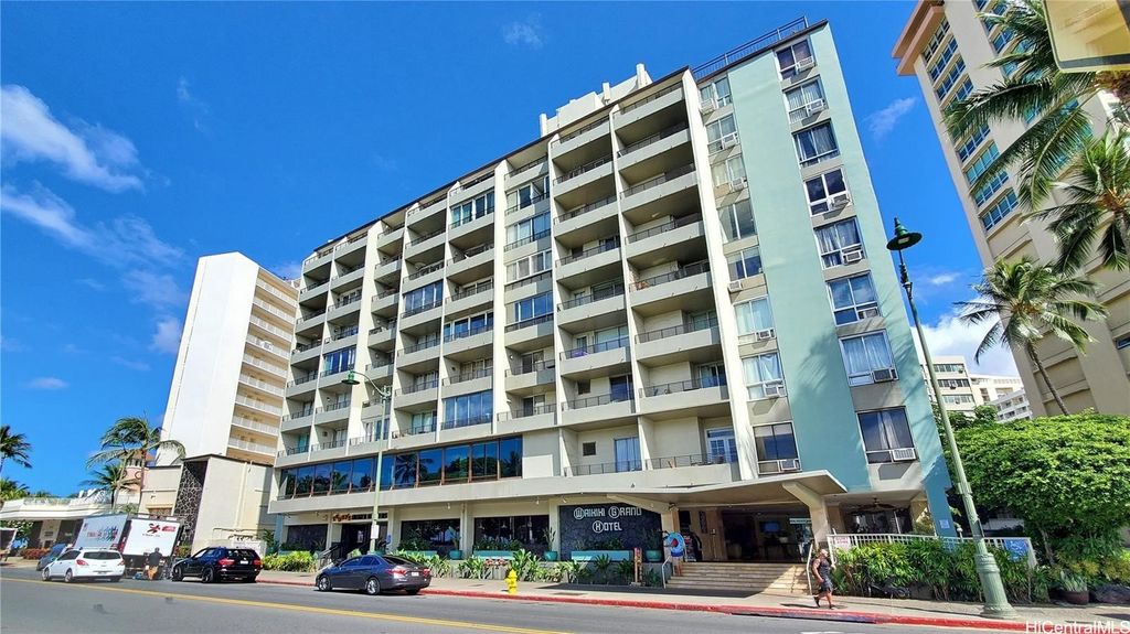 Legal short-term condotel in the popular Waikiki Grand Hotel! Spacious "residential" style unit with one of the largest floor plans, featuring a kitchenette with two-burner cooktop, fridge, and microwave. Dual-pane windows offer a quiet, modern feel. This fully legal vacation rental requires no special DPP registration"”ideal as an investment or private getaway. Enjoy the unbeatable location just steps from Waikiki Beach, with access to a 10th-floor rooftop deck boasting panoramic views of Diamond Head, the Zoo, and the ocean. On-site dining options include a restaurant, bar, and grill, plus nearby parking. Monthly maintenance fee covers electricity, cable TV, internet, water/sewer, and common expenses. Offered Leasehold, with Fee Simple interest available for purchase now.