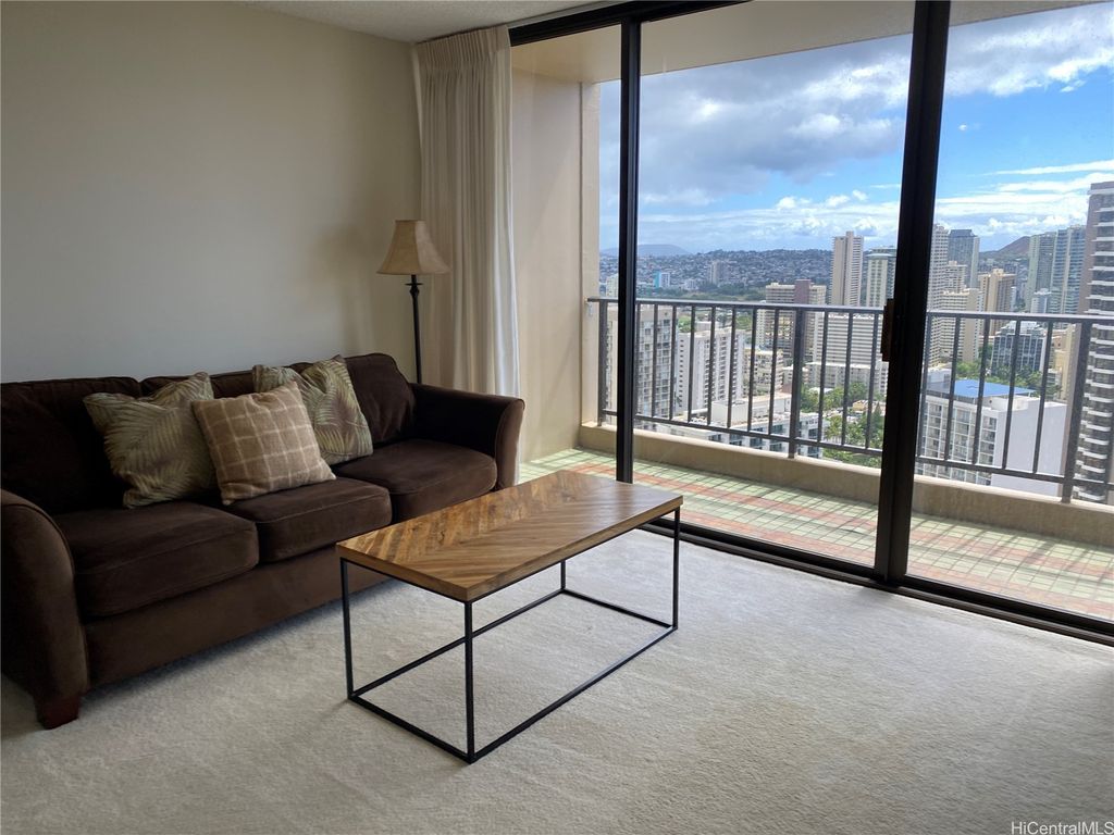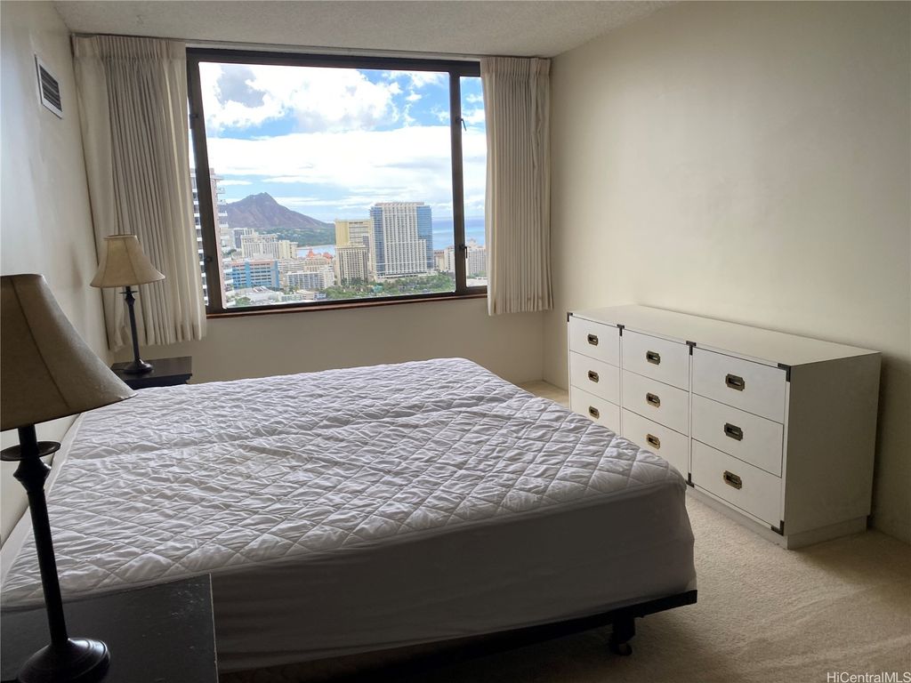 Available furnished 1 bedroom, 1 bathroom apartment in CHATEAU WAIKIKI with 1 (tandem) assigned secured parking stall. ** Viewings only by email via appointment. Please No Phone Calls. Email rental@hawaiianjoy.com for inquiries. Monday to Fridays only. No virtual tours. ** Initial lease terms start at 6 months and month-to-month thereafter. Convenient location close to Waikiki Beach, Ala Moana Beach, Ala Moana Center, shops and restaurants. This high floor unit includes full kitchen with stove/oven and dishwasher, 2 twin beds combine to a king bed, washer/dryer in unit, shower/tub, carpet floors, central a/c, and a lanai with Diamond Head and ocean views. The furniture must stay in the unit. Utilities included: Electricity, water/sewer, hot water, and tax. Building includes: 24/7 security, general manager, BBQ, recreation room, Fitness room, Pool, and Sauna. No pets. No smoking. Renters insurance required at move in.