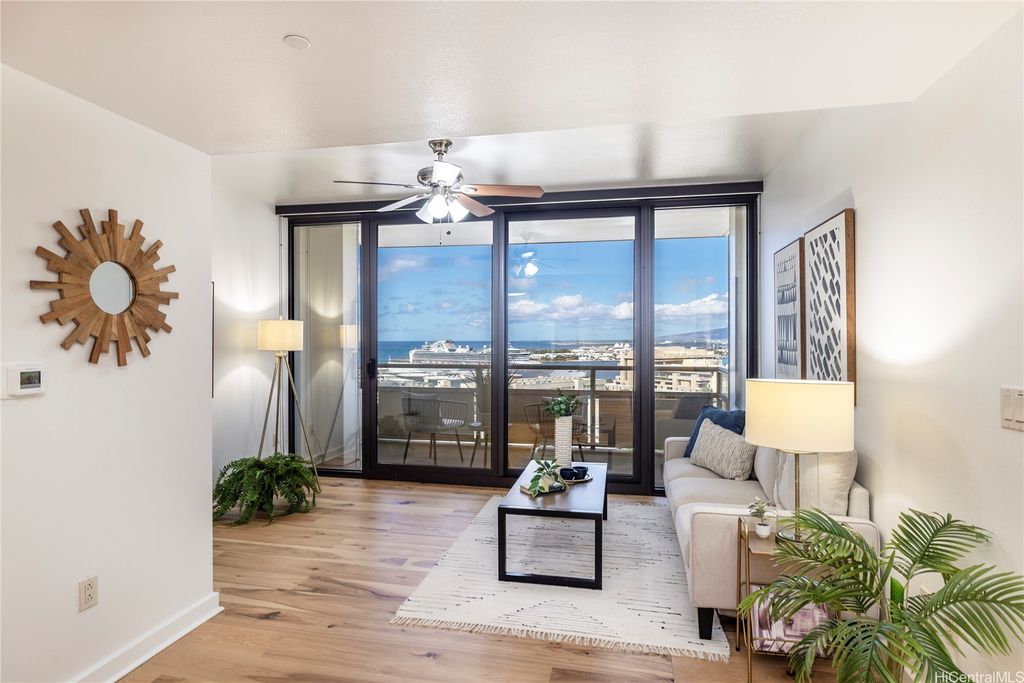 Experience modern urban living at Keola Lai #2003, a beautifully refreshed 2-bedroom, 2-bath residence perfectly positioned high above Kakaako. Freshly painted and featuring brand-new appliances along with a new central AC system, this move-in-ready home combines modern comfort with elevated design. Floor-to-ceiling windows frame sweeping ocean, city, and mountain views, while the private lanai"”a rare feature not available in all units"”extends your living space for effortless indoor-outdoor enjoyment. This residence also includes the luxury and convenience of TWO parking stalls. Keola Lai is one of Honolulu's premier luxury communities, offering resort-style amenities including a fitness center with brand new equipment, pool, BBQ areas, and 24-hour security"”all just moments from SALT at Kakaako, downtown Honolulu, and Ala Moana. BONUS!!! Take advantage of an assumable VA loan at an incredible 2.25% interest rate! Don't miss this opportunity to own a stylish, move-in ready home with unbeatable financing options.