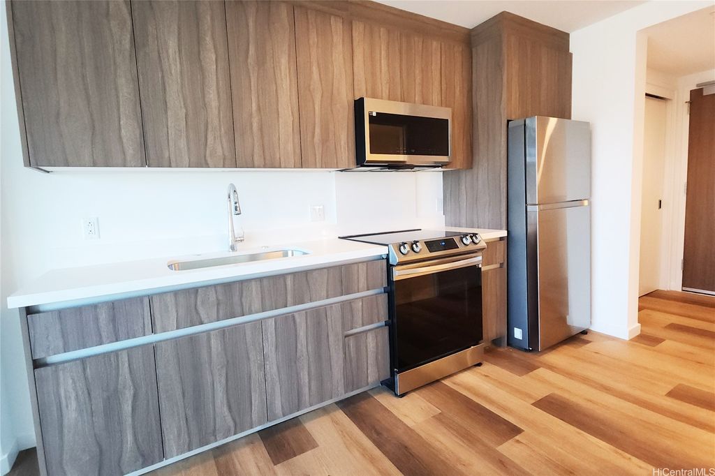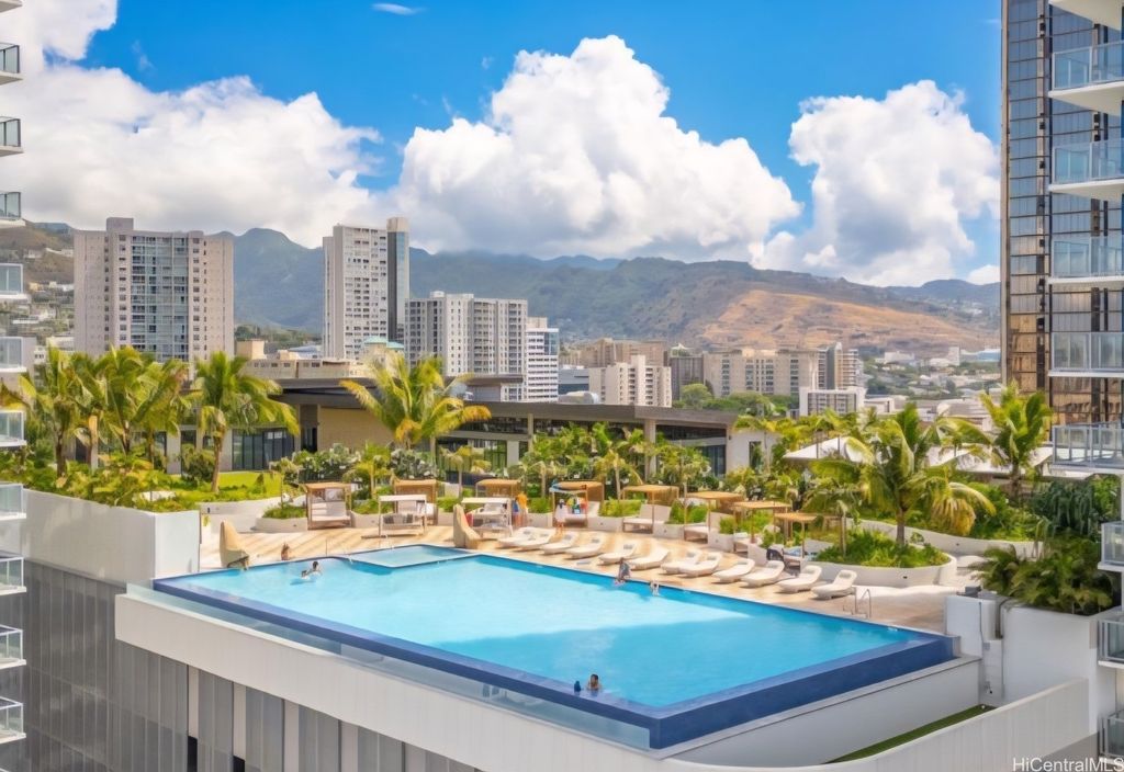 Be the first to live in this beautiful new studio condo at The Park on Keeaumoku. Beautiful new blinds are installed. High-end shoe cabinet at the entrance. Beautifully landscaped outdoor recreation deck with stunning infinity pool, hot tub, BBQ Pavilions. Other amenities include: fitness center, yoga room, sauna, theater room, movie room & conference room. Never-lived-in studio unit with washer/dryer, refrigerator, range, microwave, portable dishwasher, and split A/C wall unit. 63 square feet of lanai with great city views. Conveniently located on Liona & Keeaumoku St., Across from Sam's Club, Walmart, McDonald's, and a few blocks from Ala Moana Shopping Center. Truly an extraordinary urban living experience. Brand new building!! Included: Internet, cable, water, sewer, and garbage. Excluded: Electricity is separate, and we will send a monthly bill to the tenant. Minimum lease is 1 year.