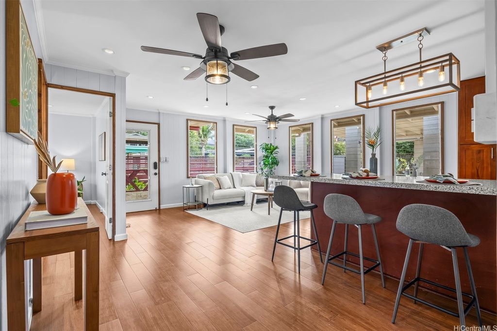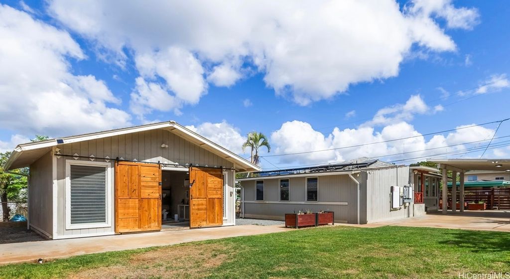 Welcome to this charming 3-bedroom, 1-bath home with attached 420sqft guest suite (studio/1bath) in the heart of Ma'ili, where island living meets everyday comfort. Thoughtfully maintained with many upgrades, this residence features an open and airy layout filled with natural light and split system A/C throughout the home. Step outside to a fully fenced property with automatic rolling gate to enter a spacious covered carport with enough space to park 4 pick-up trucks. The large lawn and yard is perfect for entertaining, gardening, and relaxing. Behind the main home lies a versatile 400 sq. ft. detached flex space with air conditioning, ideal for a home gym, and office. Recent improvements include AC, photovoltaic panels (2020), and a carport & storage built in 2022. Conveniently located 2 blocks from Nani Kai Beach Park, and the Pu'u O Hulu hiking trail, this home offers both adventure and tranquility. Make this peaceful island retreat on Oahu's Leeward Coast your next home.