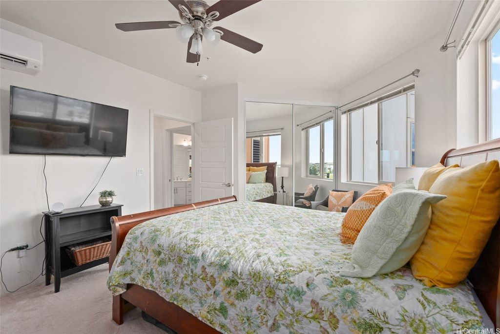 Discover comfortable island living in this spacious 2-bedroom, 2-bath home located in a secured building. Enjoy cool comfort with split A/C in every room, lots of natural light, and a relaxing lanai to unwind. The home features a full-size washer and dryer, smart home system with Bluetooth connectivity, and keyless entry for easy everyday living. Comes with 2 open, assigned parking stalls. Conveniently located near UH West Oahu, the Rail Station, and Ka Makana Ali'i for shopping, dining and entertainment. Plus, take advantage of the nearby SoHo Community Center Amenities - a great place to gather and enjoy the neighborhood!
