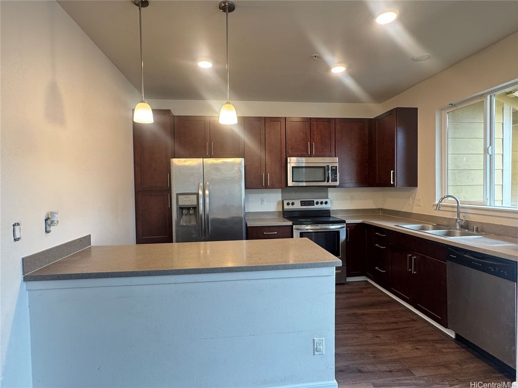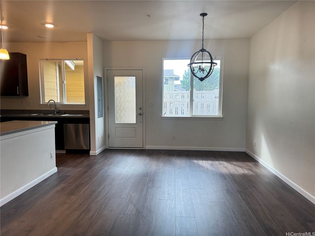 AVAILABLE NOVEMBER 1, 2025. PET FRIENDLY! FRESHLY PAINTED INTERIOR. NEW VINYL PLANK FLOORING. NEW WASHER/DRYER. NEW WATER HEATER, ONE CAR GARAGE AND PARKING PAD. You're going to love this 3 bedroom, 2.5 bath, 1 car garage with parking pad, nicely upgraded home located in the vibrant and family-friendly community of Hoopili. Open floor plan! All stainless steel appliances, vinyl plank flooring throughout the first floor, split AC units in all the bedrooms and living room. Beautifully manicured, fully fenced, front courtyard and a fenced in backyard. This home is in a premier location, in close proximity to Costco, Target, Kroc Center, Ka Makana Ali'i Mall, UH West Oahu, restaurants, shops, and the beautiful beaches on the westside of Oahu. Also located in close proximity to two transit stations of the Skyline, which now extends to the airport. Access to community amenities such as playgrounds, pool, soccer field, and community events are included with your tenancy.