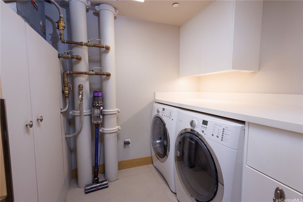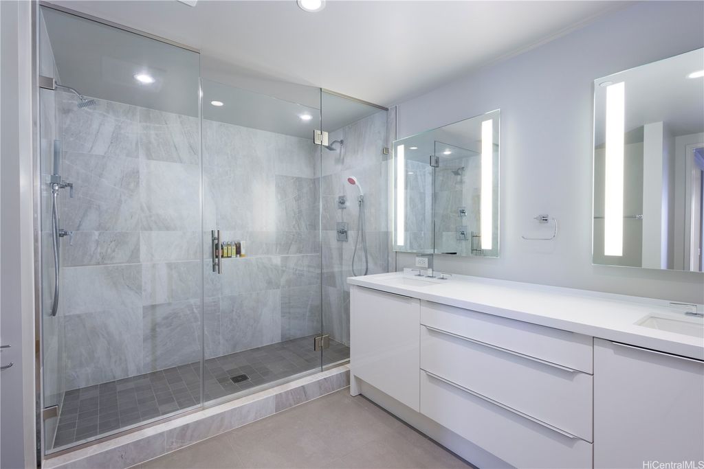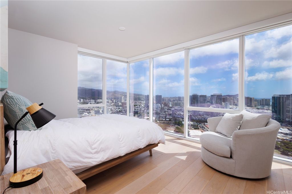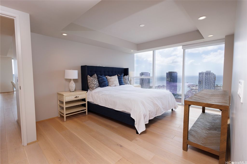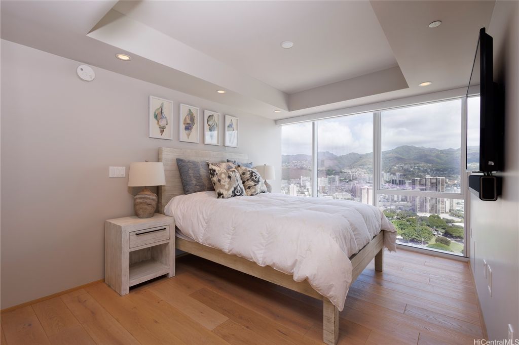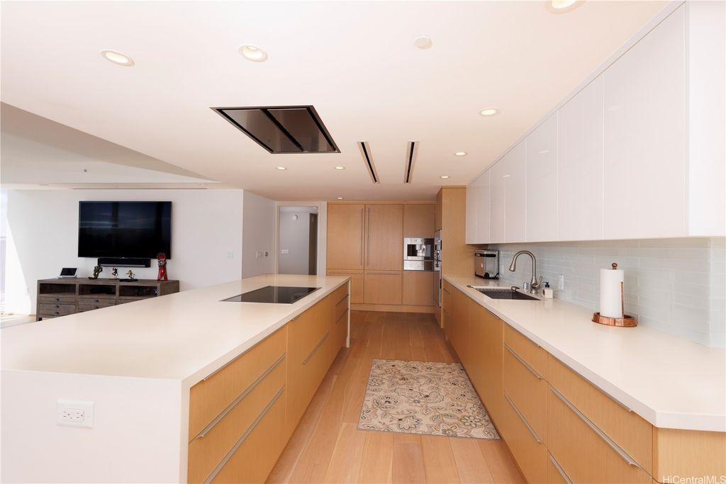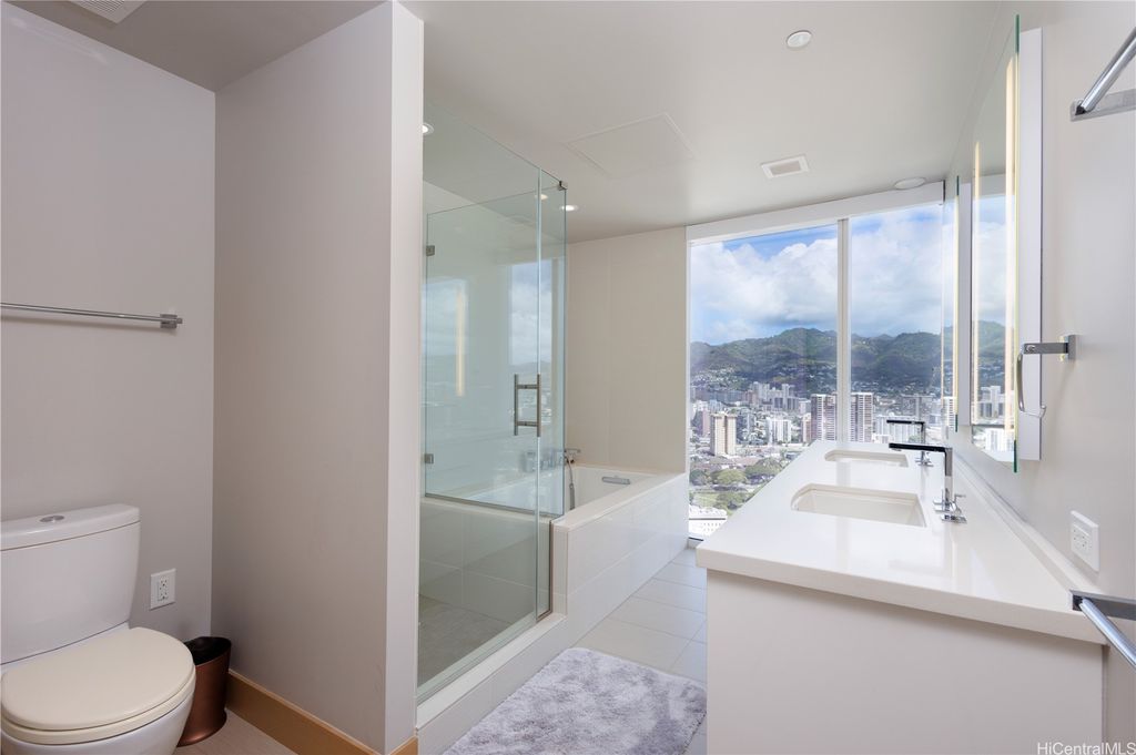 One-0f-a-kind combined residence (#4303/4305) with separate storage (111 sf), offering 2,662 sq.ft. of luxurious living space and four full-size parking stalls. Enjoy 270 degree panoramic views from the mountains to the turquoise ocean, with every room capturing a view. By day, take in the blue sky, green mountains, and shimming ocean; by night, be enchanted by the city light and breataking sunset glow. This exceptional home features floor-to-ceiling glass windows, custom cabinets/closets. The expansive living and dining areas, den, walk-in pantry, and spacious laundry room create a perfect blend of comfort and sophistication. Relax on the open lanai, sipping wine while watching the sunset. Residents enjoy resort-style amenities, including a heated infinity pool, fitness center, spa, guest suites, and dog park, all within one of Honolulu's most desired urban addresses