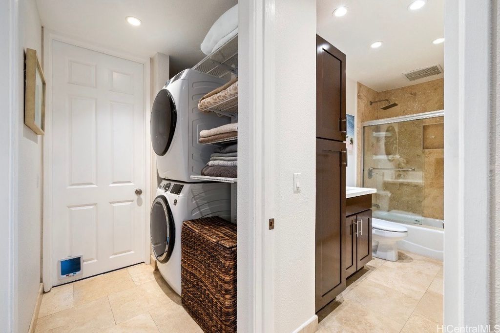 Discover island living at its finest in this beautifully refreshed 3 bdrm/2 bath home at Gardenia Manor, in the heart of Kailua Town, just 0.5 miles from Kailua's white sandy beaches. Recent (2024/2025 Upgrades) New water heater, new Bosch dishwasher, new Washer/dryer, new screens, remodeled bathroom with travertine finishes, painted cabinets, new faucets. Open-Concept layout with travertine floors, recessed lighting, granite counters, glass tile backsplash, and deep farmhouse sink. Popcorn ceilings removed for a modern feel. Bedrooms feature custom California Closet systems, and new ceiling fans. Relax on your spacious lanai overlooking a lush courtyard perfect for unwinding. Community Perks: Pet friendly, Happy Families, Pool, BBQ area, resident manager (lives on property), private storage locker, quarterly pest control, 2 covered parking stalls (side by side), if you need another stall, owner rents one more stall. Prime spot near Whole Foods, Target, Schools, eateries, Kailua District Park, and Lanikai Beach. Turnkey Paradise- schedule a viewing today!