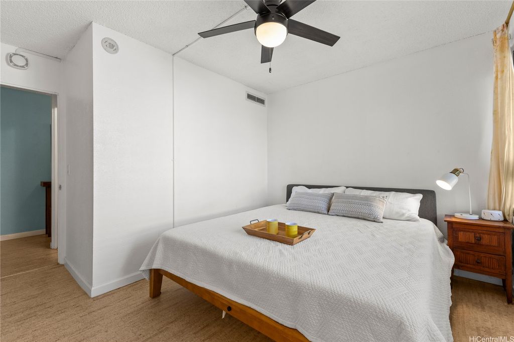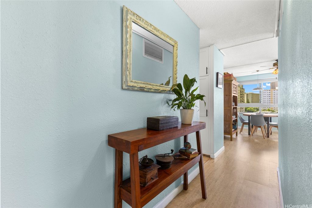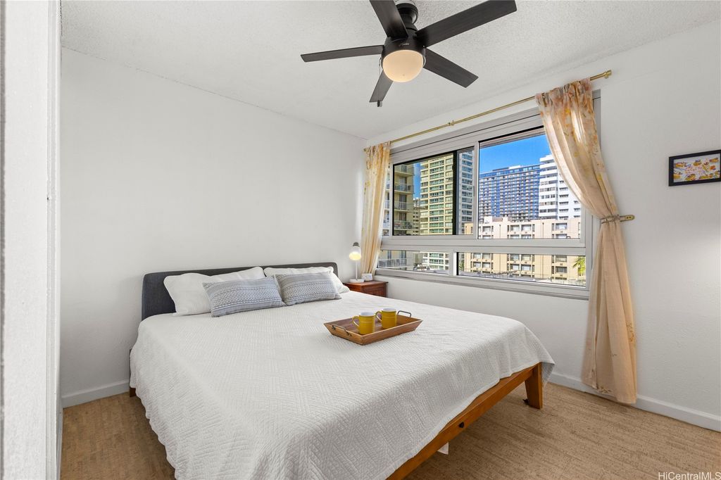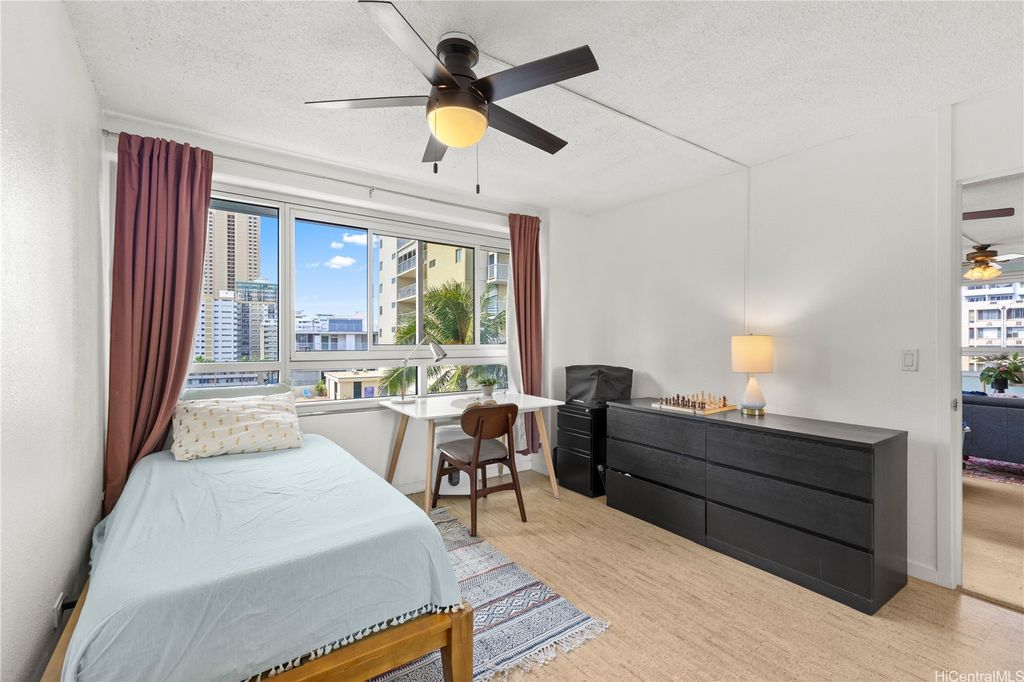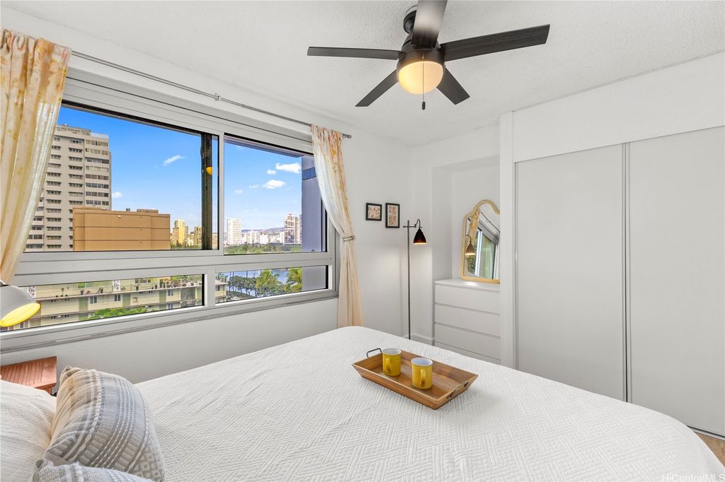 Fairway Manor is a boutique condominium with only 4 units per floor, offering a sense of privacy and community rarely found in the area.Its mid-rise scale and quiet environment appeal to those who appreciate a more residential feel while staying close to all the excitement Waikiki has to offer. The unit 603 has great floor plan. each bedroom separate out , the condo just replaced all windows brings many light and great air ventilation . All windows are Hurricane-rated double-pane windows for safety and energy efficiency. Just renovated brand-new kitchen has been tastefully designed with sleek cabinetry, quartz countertops, and contemporary fixtures that blend functionality with modern aesthetics. Central AC included maintenance fee , chill system is going to replace next year. Feels like home !Deeded approx 8x4 storage space is included .
