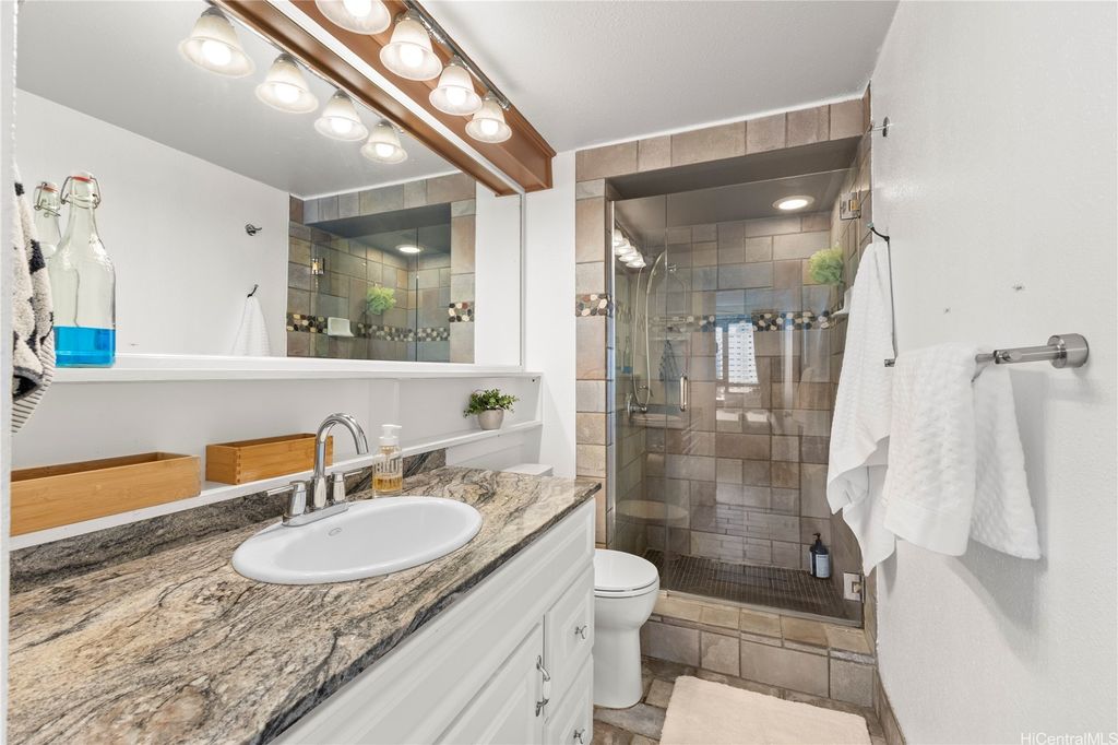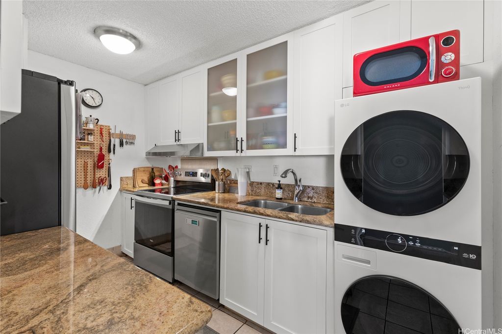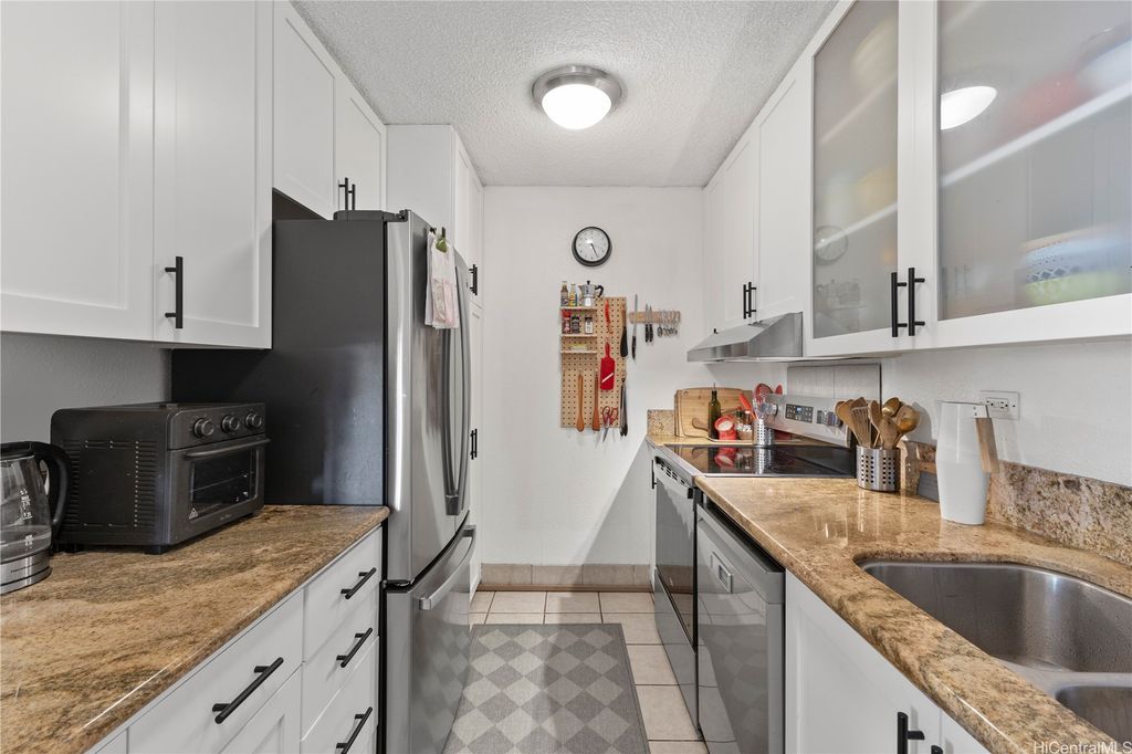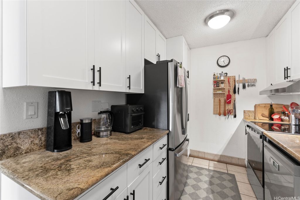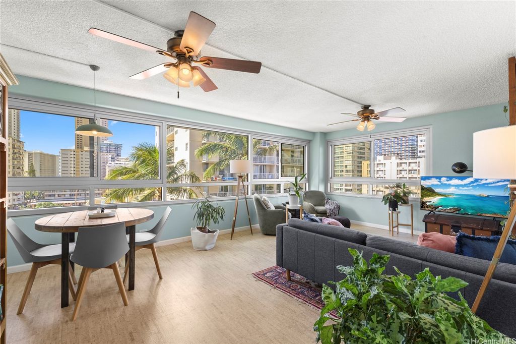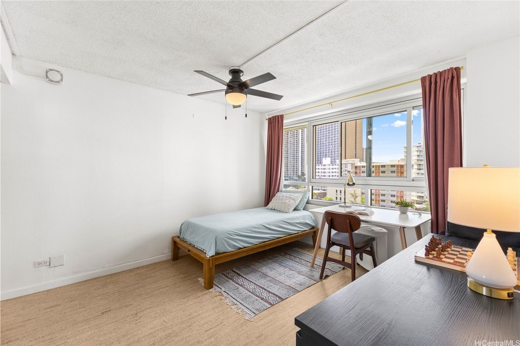 Fairway Manor is a boutique condominium with only 4 units per floor, offering a sense of privacy and community rarely found in the area.Its mid-rise scale and quiet environment appeal to those who appreciate a more residential feel while staying close to all the excitement Waikiki has to offer. The unit 603 has great floor plan. each bedroom separate out , the condo just replaced all windows brings many light and great air ventilation . All windows are Hurricane-rated double-pane windows for safety and energy efficiency. Just renovated brand-new kitchen has been tastefully designed with sleek cabinetry, quartz countertops, and contemporary fixtures that blend functionality with modern aesthetics. Central AC included maintenance fee , chill system is going to replace next year. Feels like home !Deeded approx 8x4 storage space is included .