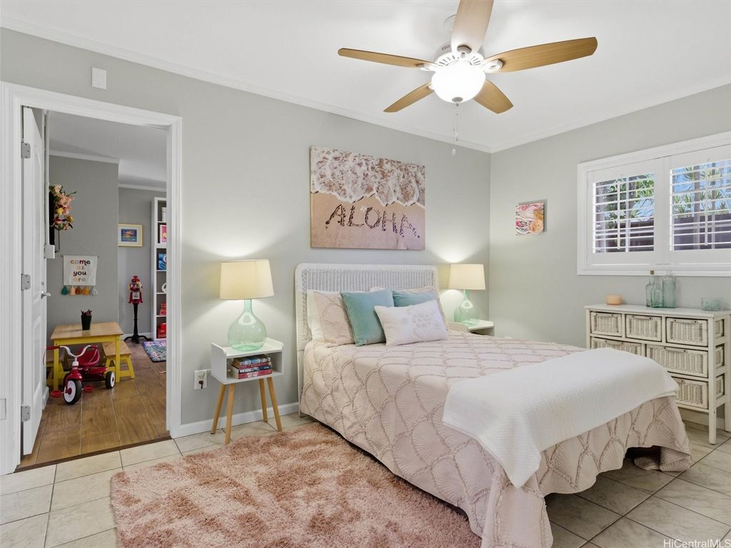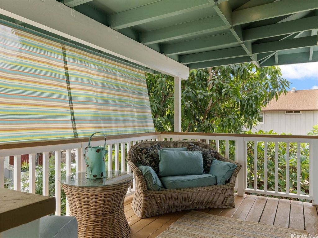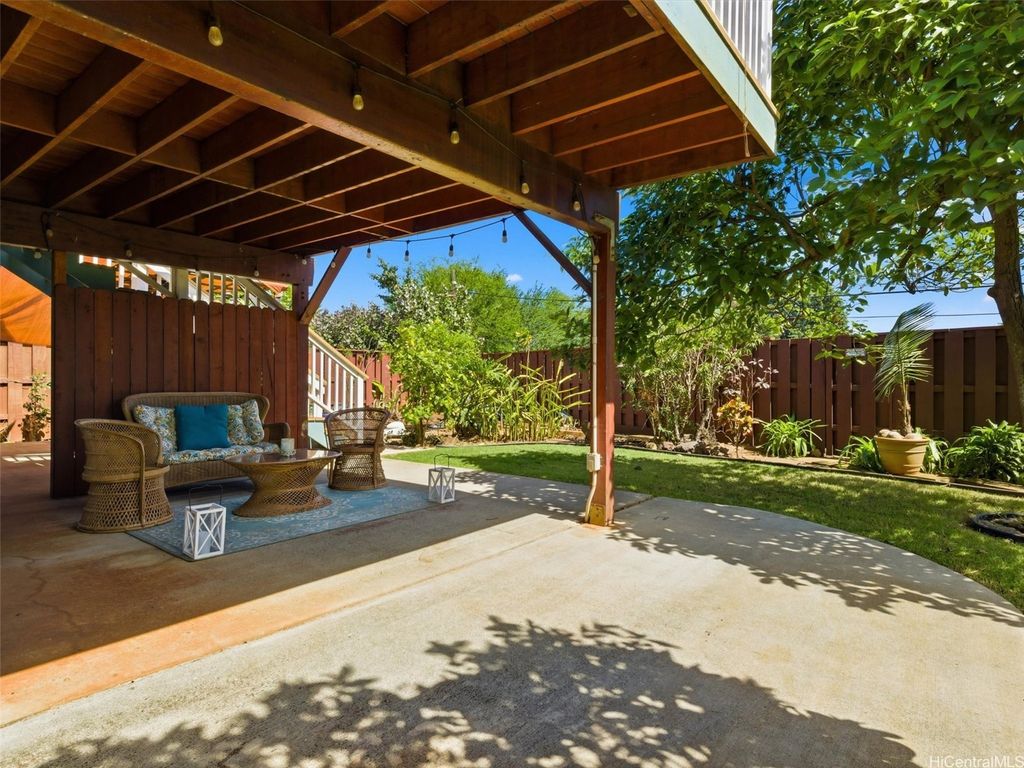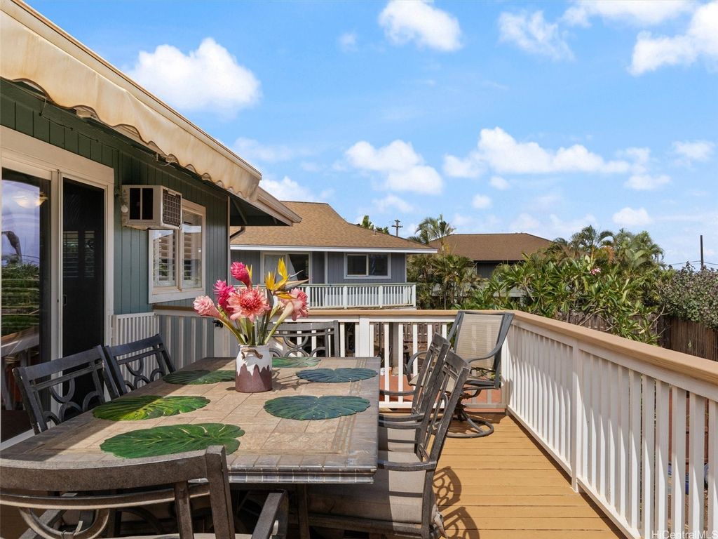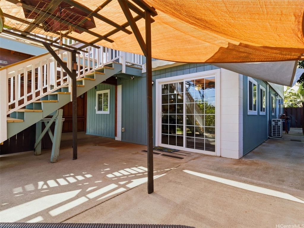 Situated in an upscale cul de sac near the beach, this home has been lovingly maintained by original owner. A few of the many features of this property include three bedrooms, two bathrooms upstairs, and 2 bedrooms, 1 bath downstairs with separate entrances. Separate laundry on each floor. Upgrades include 22 owned solar panels, septic already installed, cedar sauna,landscaped yard with sprinkler system. The large lot has Mango, avacado, citrus and plumaria trees. Huge lanai off kitchen/dining room has a peek a boo view of the ocean and lovely mountain views. Outside shower for convenience when returning from the nearby beach and large storage/workshop which could also be used as a carport.