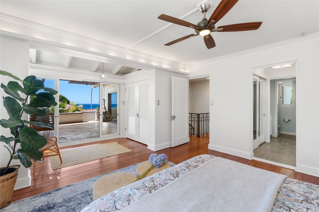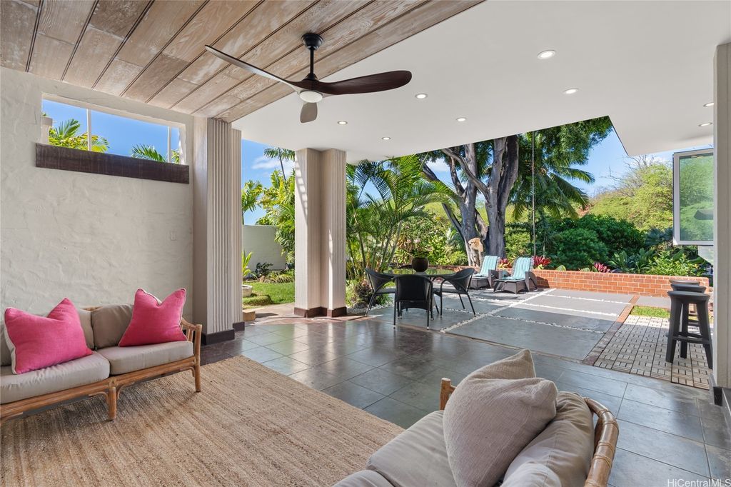 Unique and so very special, this 1937 Albert Ives home nestled between Diamond Head Rd and the world famous Diamond Head National Monument. This beautiful home is located on the prestigious and iconic Makalei Place. Gorgeous ocean views can be enjoyed throughout this private sanctuary. It's surrounded by nature, birds and landscaped gardens. House and landscaping are anchored around a magnificent Chinese banyan tree. Ohia wood floors, polished concrete patios, pickled redwood walls, and modern built-in appliances are special features to name a few. Entertain and enjoy all the indoor outdoor spaces, especially the pool and spa tub. This gem of a property consists of three bedrooms and two full bathrooms upstairs of the main house. In a separate structure consistent with the rest of the home is a large guest cottage about 800 SF equipped with a kitchenette, large bathroom and its own laundry and patio space. Below the guest cottage at the bottom of this sprawling property is a finished enclosed basement with bathroom. The space is great as a workshop, artist studio or storage. This is a rare slice of history that reflects old Hawai'i with modern livability.