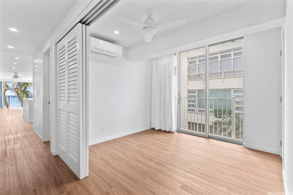 Wake up to waves and live your best Gold Coast life! This beautifully remodeled 2-bed, 2-bath oceanfront retreat at Oceanside Manor offers 1,082 sq. ft. of coastal luxury with sweeping views of the surf, sunsets, and city lights. Thoughtfully redesigned in 2018, it features quartz counters, custom cabinetry, stainless steel appliances, designer-tiled baths, recessed lighting, and split A/C for comfort year-round. Floor-to-ceiling glass lets in the ocean breeze while solid concrete construction keeps things peaceful. Oceanside Manor is a boutique gem with recent upgrades including elevator modernization, waste-pipe replacement, and a freshly painted exterior. Enjoy secure entry, storage, surfboard racks, one parking stall, and direct ocean access. Step outside to Kapi?olani Park, the Outrigger Canoe Club, and world-class dining in Waikiki. Surf, run, and dine "” all from your front-row seat to paradise. **Maintenance fees will be getting LOWERED by 7.01% starting in 2026 due to buildings solid financial situation! The building has also had a total renovation with new elevator, paint, spalling work, and plumbing, which is the reason for special assessment.**