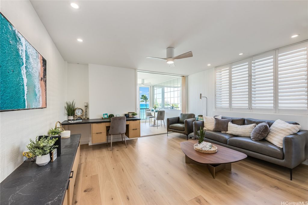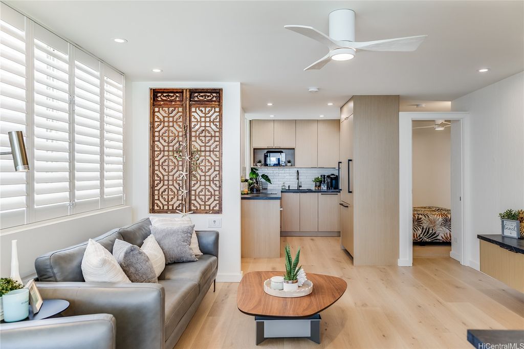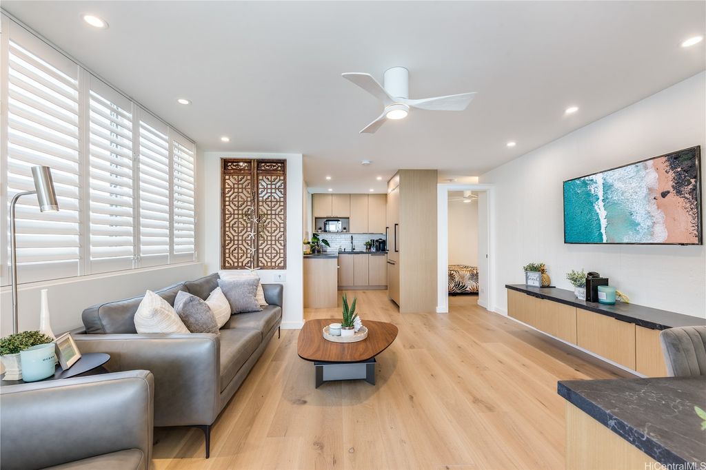 Renovated 1 Bedroom with Ocean views to enjoy Sunset & Waikiki City lights at Tropic Seas newest listing! Impeccable Design meets Functional Modern Coastal Perfection, local designer Carolyn Pace has executed a masterpiece! Your New Hawaii home features floor-to-ceiling windows that frame the breathtaking view and the open layout includes a well- appointed kitchen with granite countertops, modern appliances & ample designed smart storage. Natural stone flooring enhances the beachside ambiance, while the private lanai provides space to work or dine with the sound of the waves at your Hawai'i Beach Retreat! Tropic Seas Inc. offers exclusive amenities, including private ocean access, a barbecue area, lockable owner storage and a resident manager. Enjoy nearby Kapiolani Park, Kaimana Beach Hotel, Diamond Head & Waikiki Beach, dining & shopping. This is a rare opportunity to own a piece of paradise in one of Honolulu's most desirable locations. Make your offer today or schedule your private showing now!