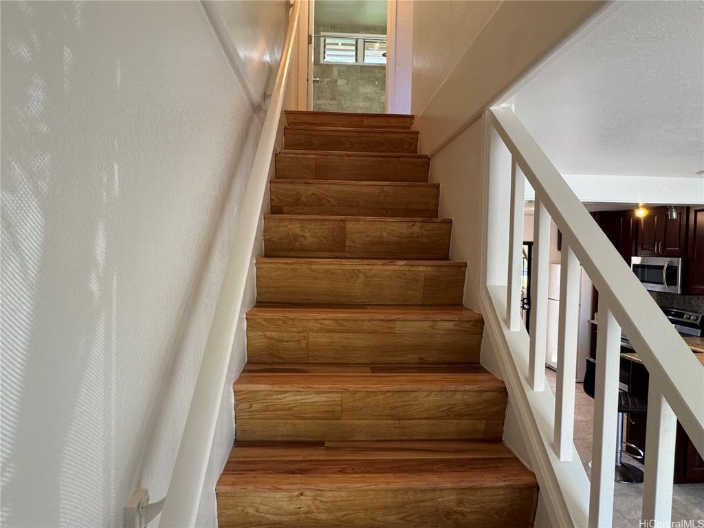 Welcome to this move-in ready two story townhouse in the heart of central Oahu, located in the desirable Waiau Gardens Kai Community. The first level features the kitchen, living room, half bathroom, laundry, storage room, and private exterior lanai. The second floor has 2 bedrooms and full bath. Located at the front of the building with cool breezes flow through the unit. Convenience location, quick access to freeways, Pearl Highlands Center, Sam's Club, Pearlridge Mall, dining, schools, and parks nearby. Don't miss this opportunity. Schedule your private showing today.