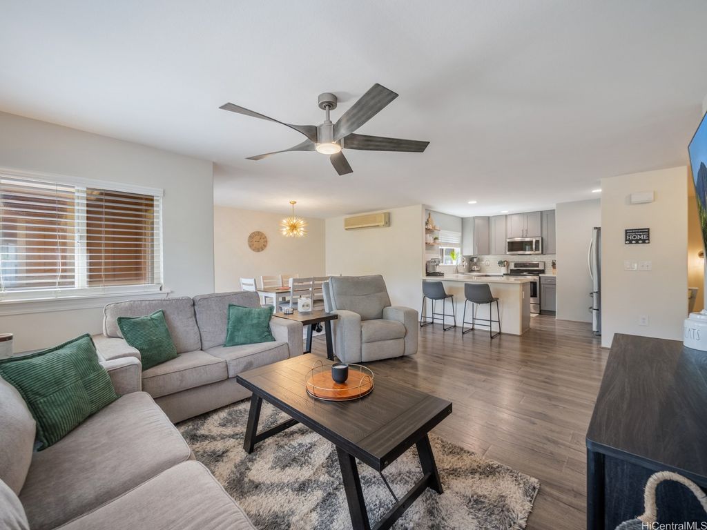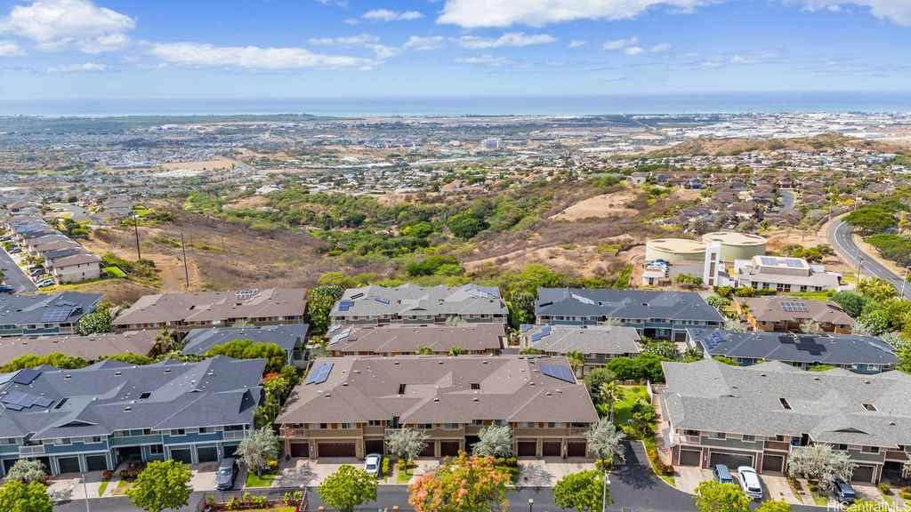 Maintenance fee going down 24% in January! Built in 2005, this beautifully updated Kai Nani at Makakilo townhouse provides contemporary comfort, function and lifestyle. Enter directly from the private garage or front door, with a second assigned stall and plenty of guest parking for convenience. Inside, the open floor plan connects the renovated kitchen, featuring newer stainless-steel appliances, sleek cabinetry and counters, to the dining and living areas that open to a covered lanai. This outdoor space is perfect for morning coffee, evening dining or simply soaking in the refreshing hillside breezes that Makakilo is known for. Luxury vinyl plank flooring and split AC units in every room ensure cool, low-maintenance living. Both bathrooms are tastefully remodeled with tile and modern finishes, while the spacious primary suite offers an en-suite bath and generous closet space. The well-kept community recently announced a reduction in HOA fees to $395.76 per month starting in 2026. Seller offering a $5,000 CREDIT to BUYER at closing. Minutes from H-1 access, Ko Olina resort, Kapolei's shops, Costco, restaurants and beaches. Assumable VA loan available for qualified buyers.